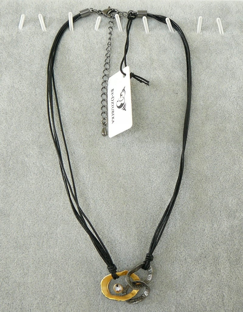 - kolor: zawieszka - srebrna, złota; zapięcie - antracytowe; skórzane paski - czarne