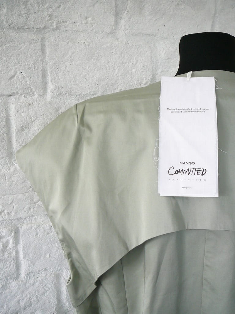 Awangardowa, długa, zapinana na magnes, bladozielona kamizelka/ płaszcz z kieszeniami MANGO