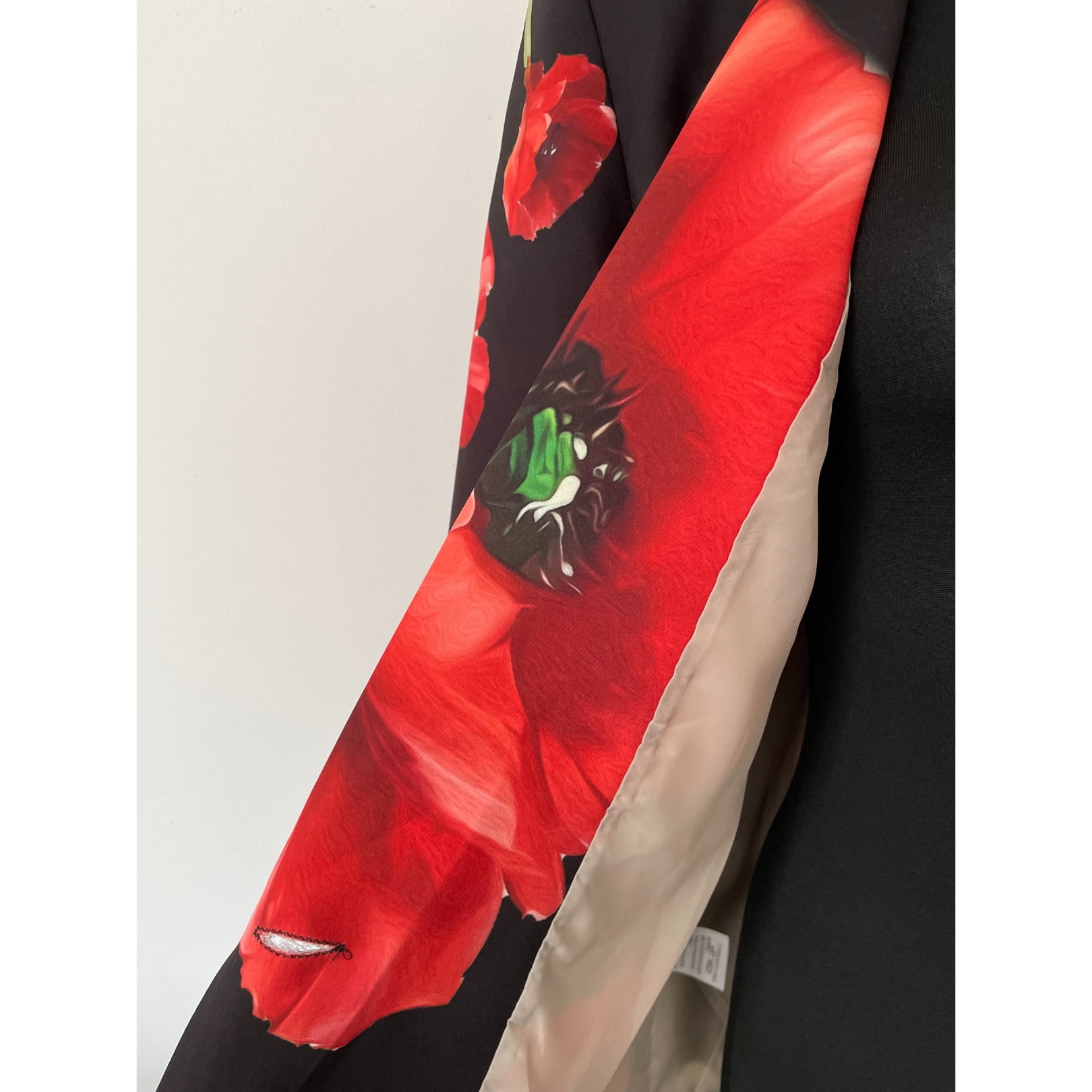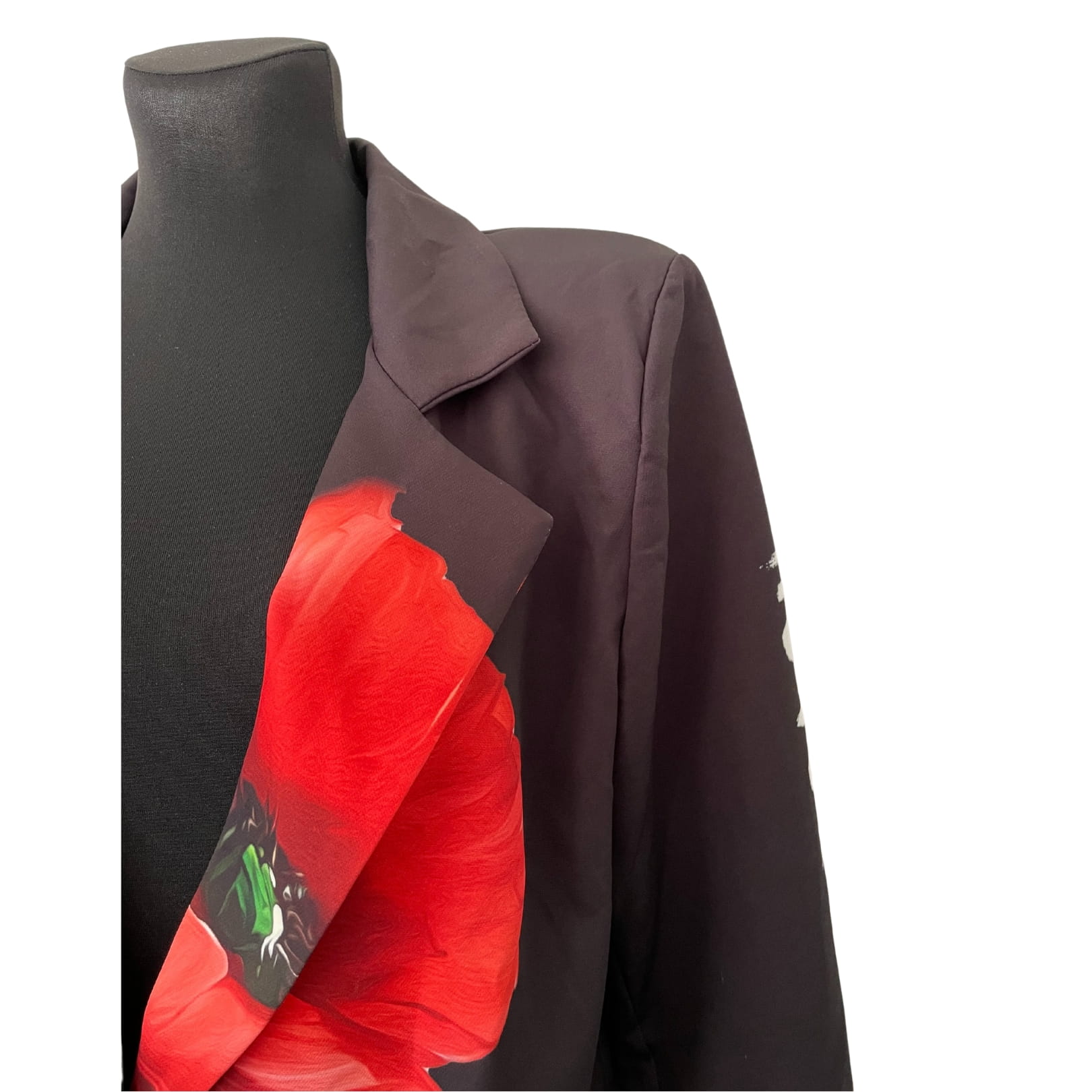 Awangardowa czarna włoska marynarka w czerwone maki