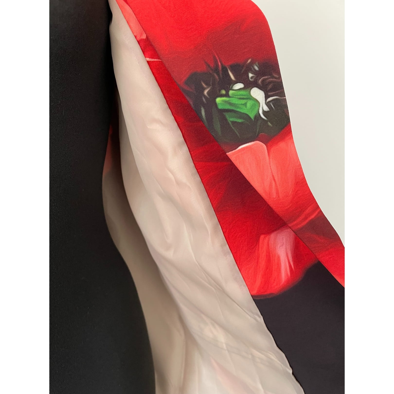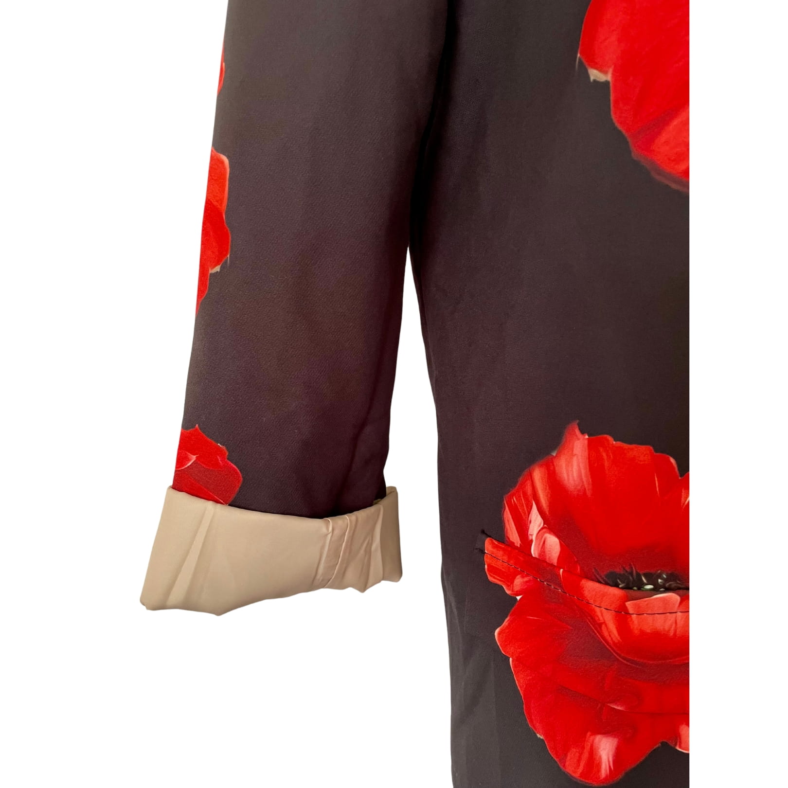 Awangardowa damska czarna włoska marynarka w czerwone maki, z długim rękawem - r. uniwersalny
