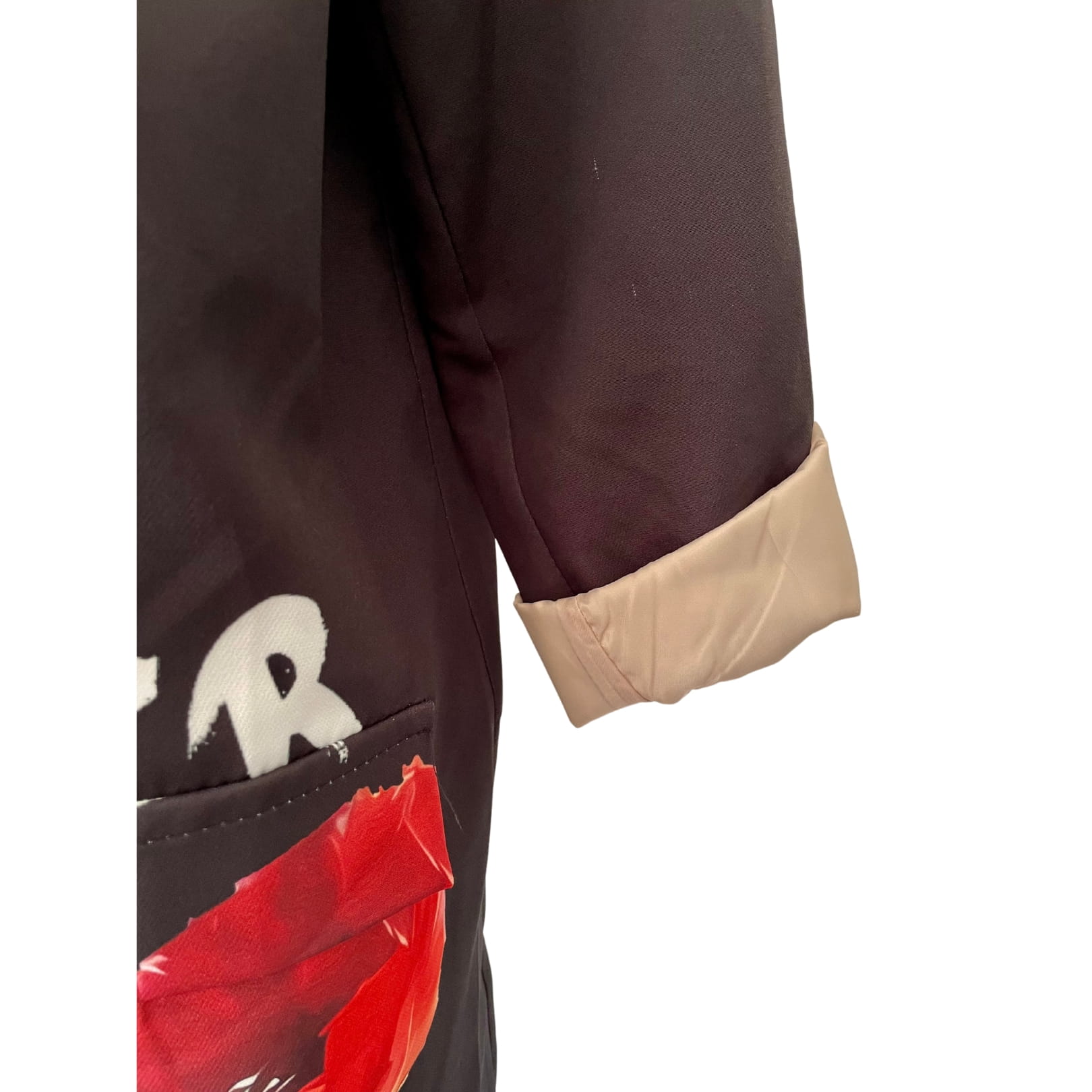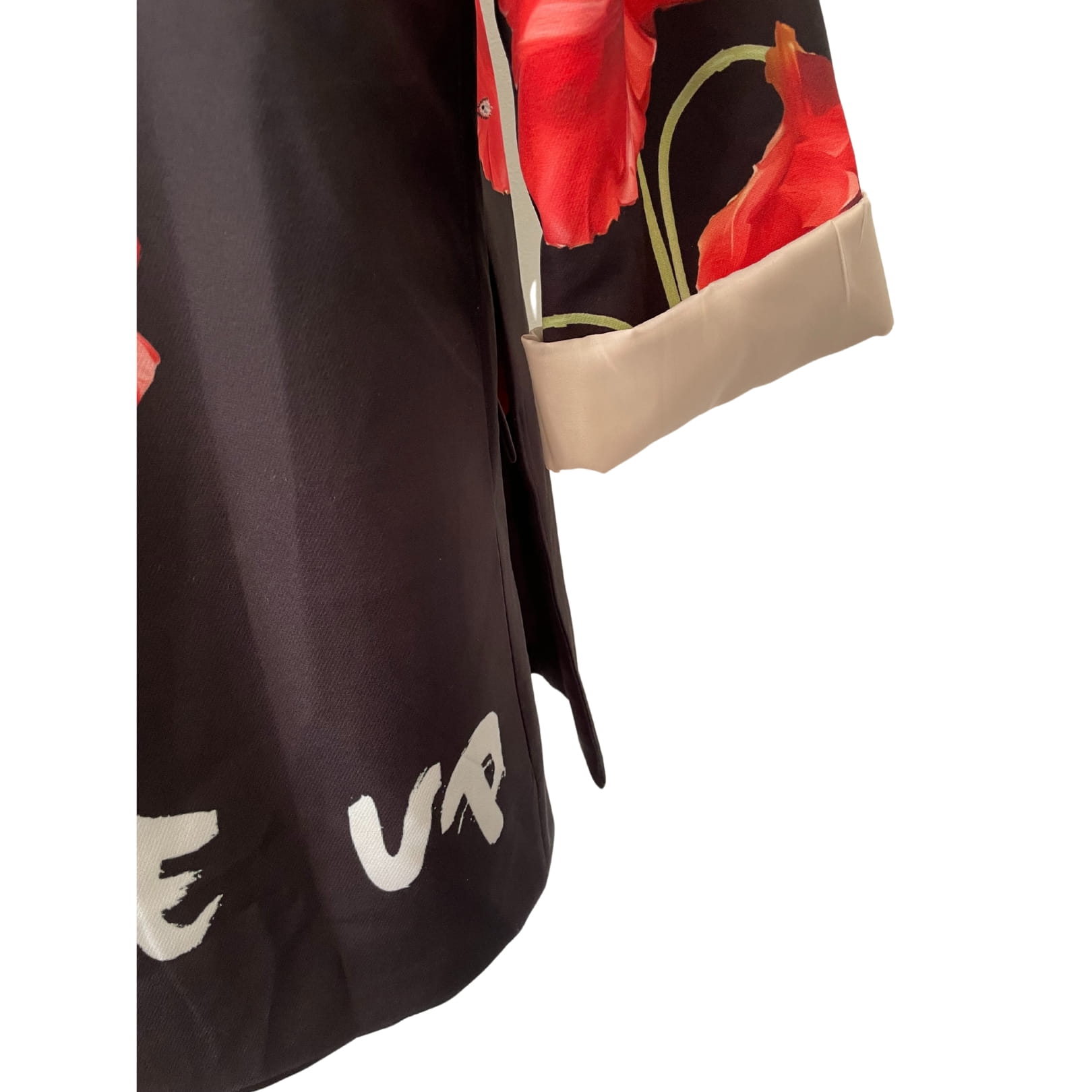- kolor: czarny; kwiaty - czerwony, zielony; napis - biały (dostępna również marynarka w kolorze białym - proszę spojrzeć na warianty)
