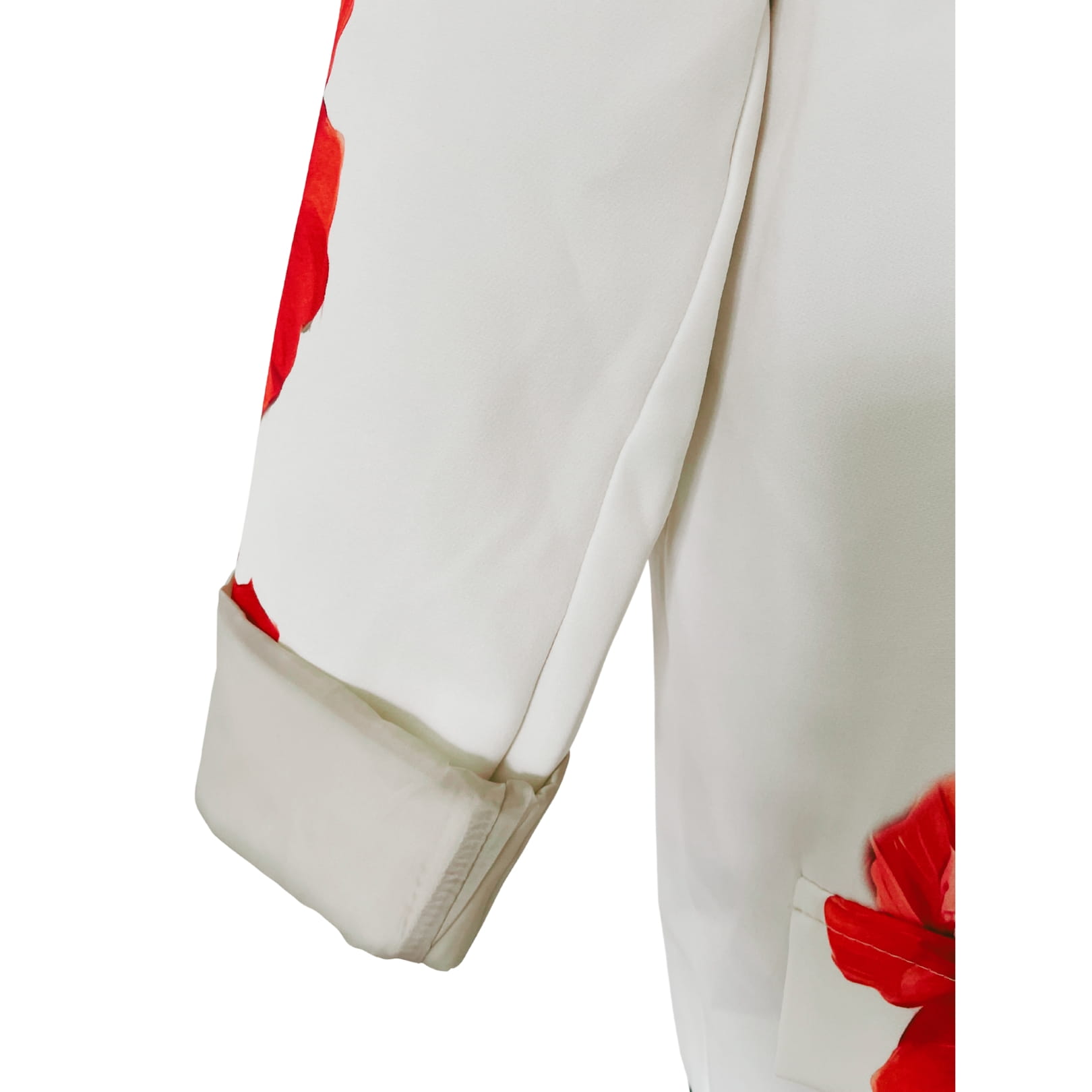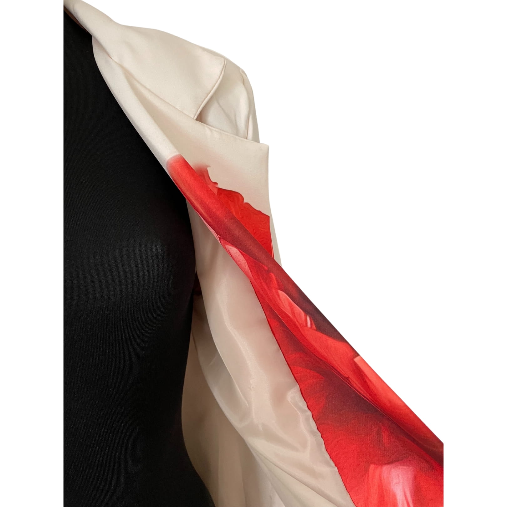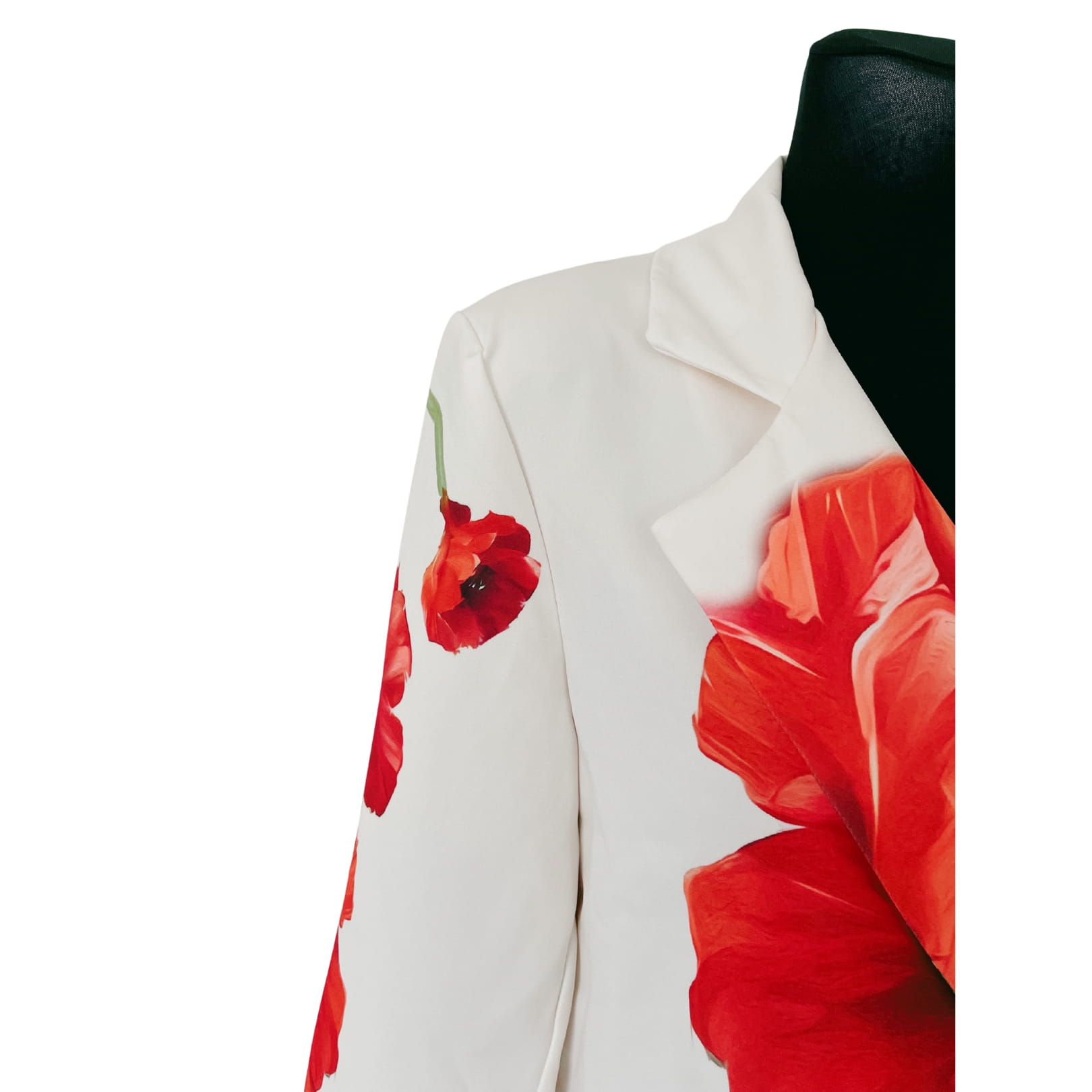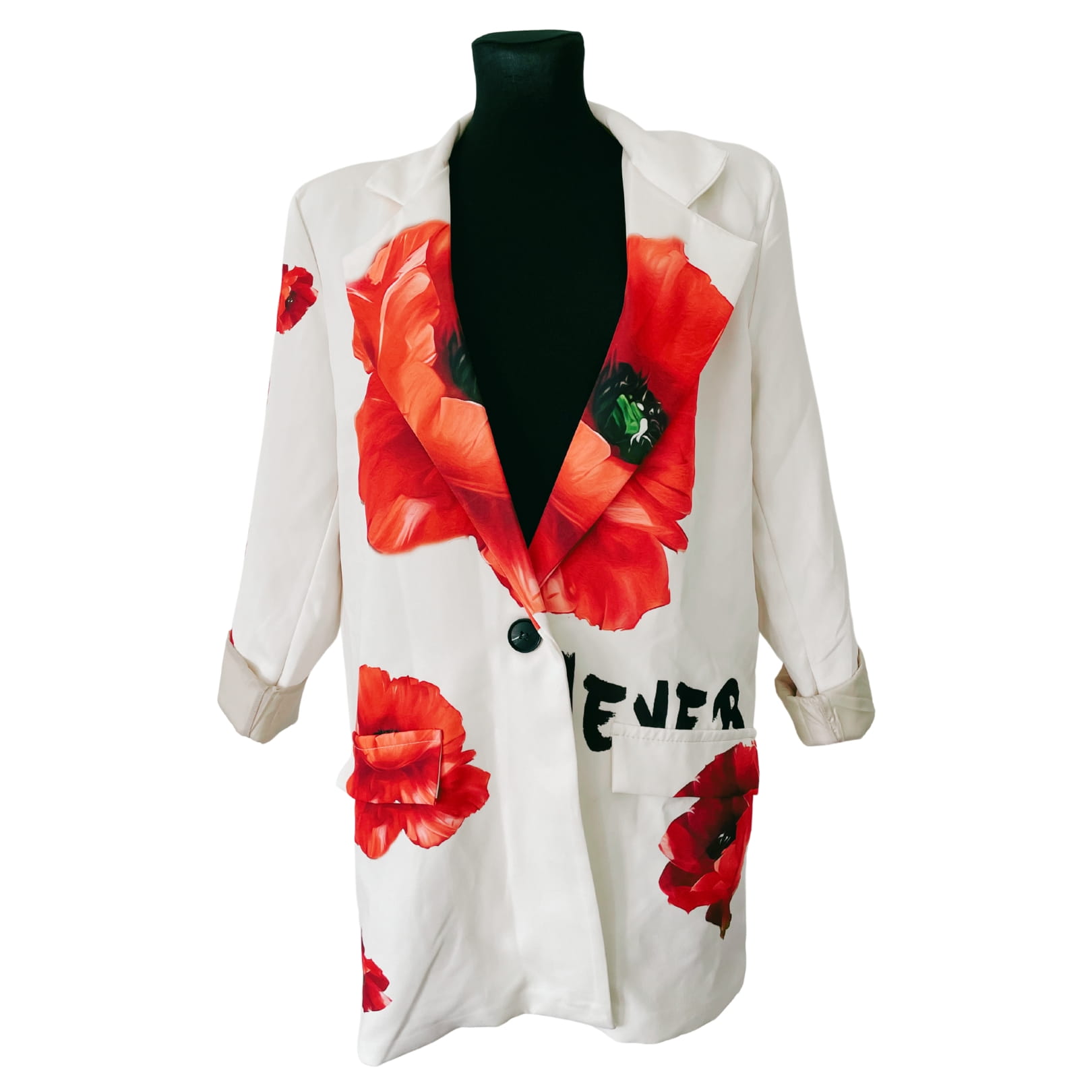 Awangardowa damska kremowa włoska marynarka w czerwone maki, z długim rękawem - r. uniwersalny