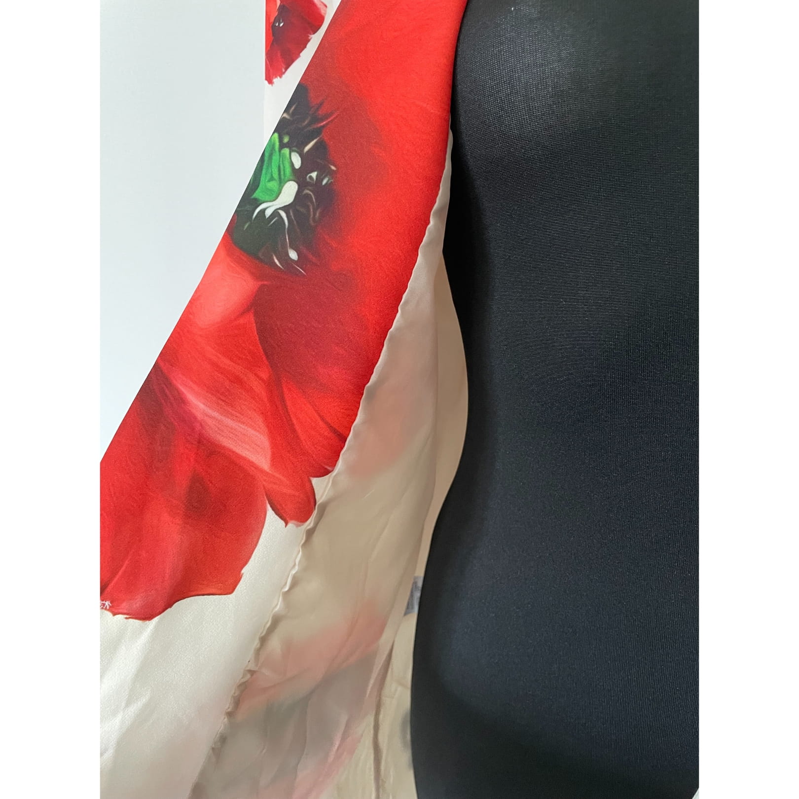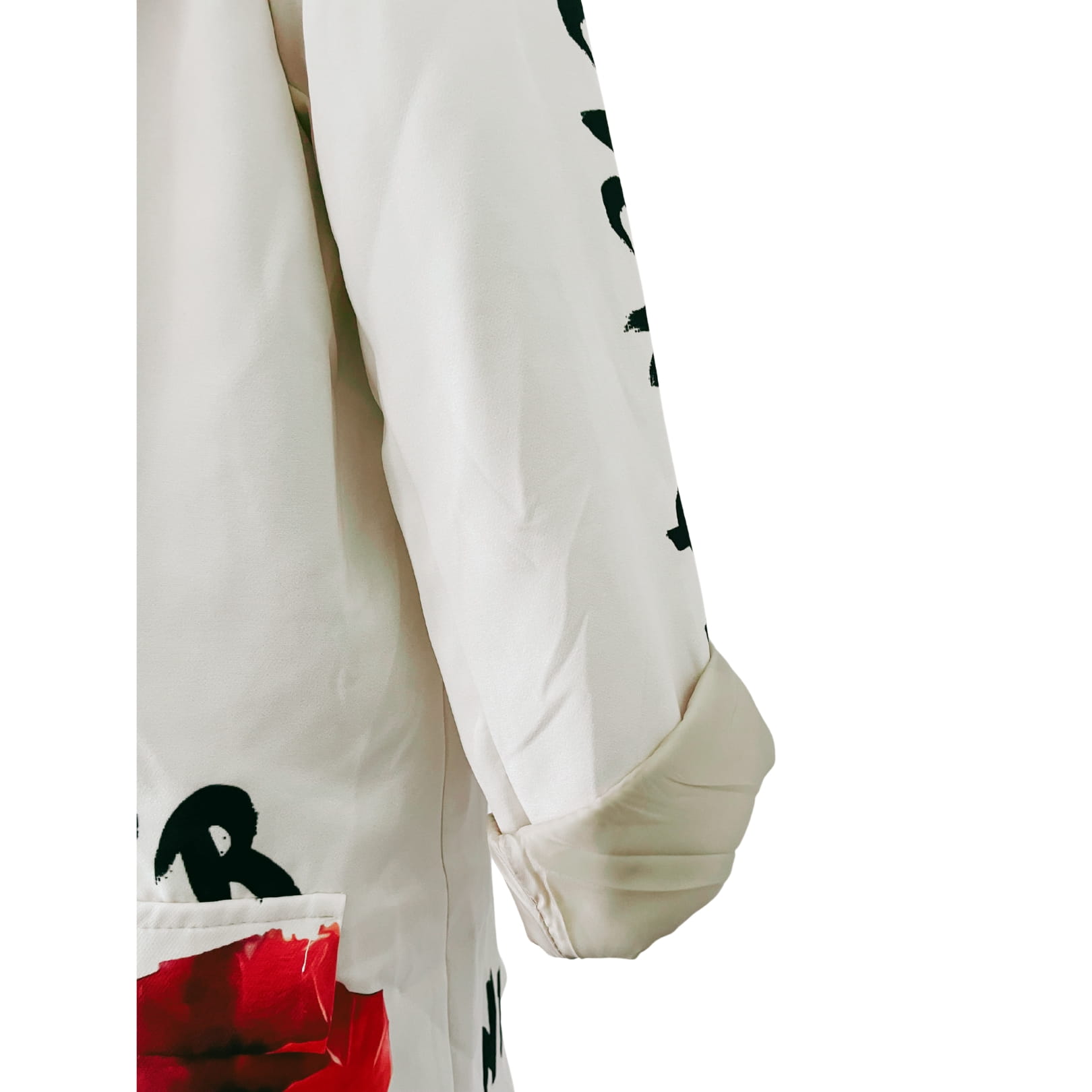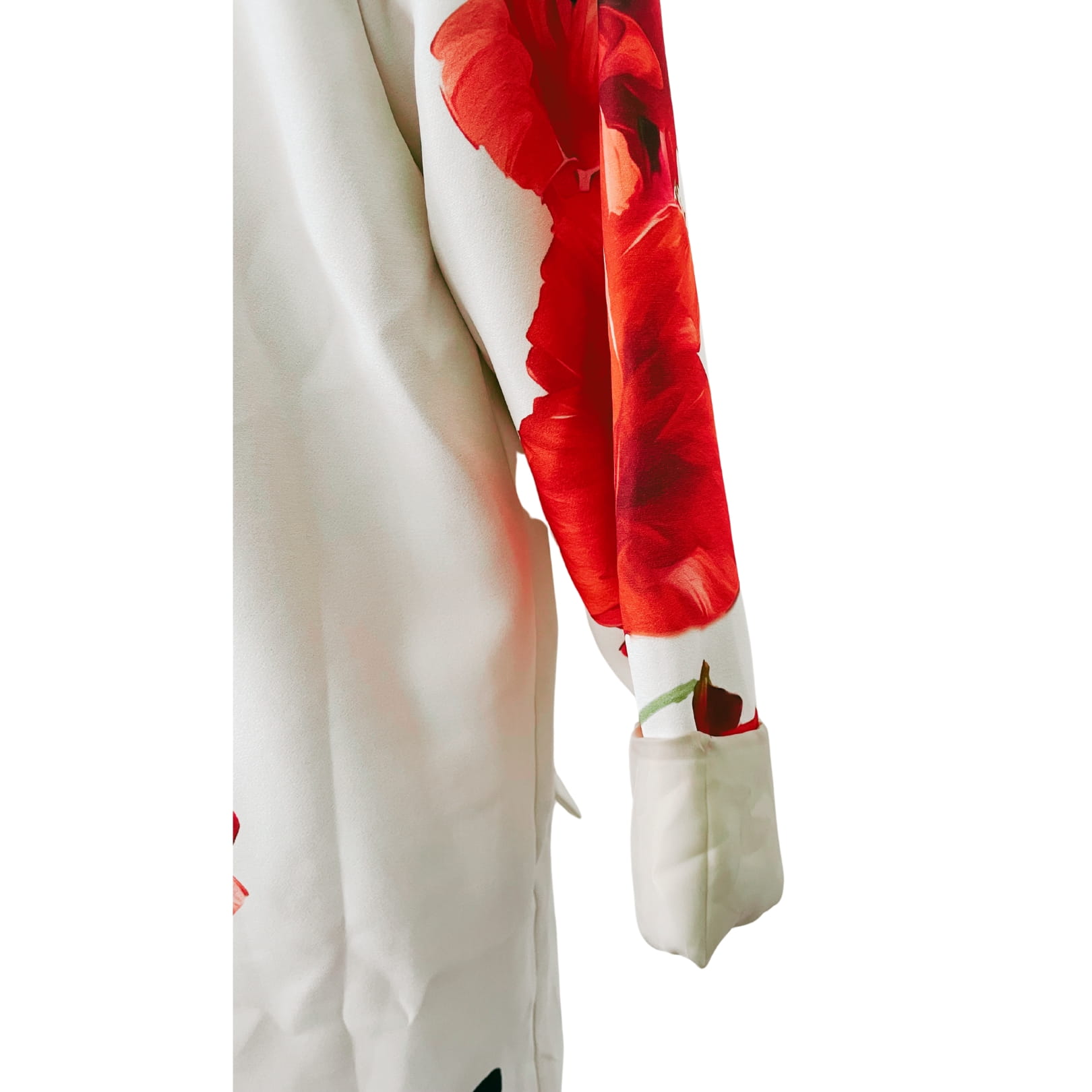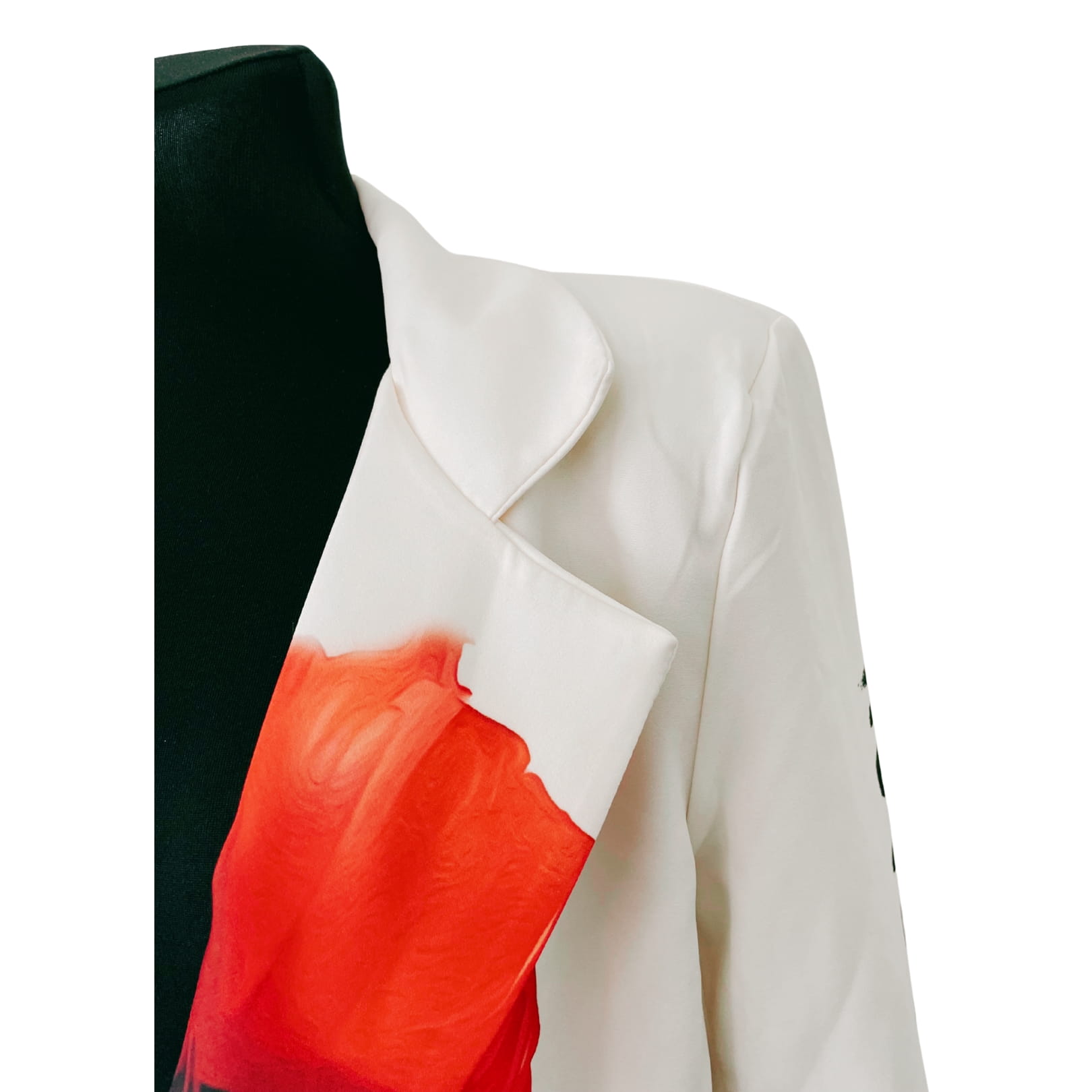 Awangardowa damska kremowa włoska marynarka w czerwone maki, z długim rękawem - r. uniwersalny