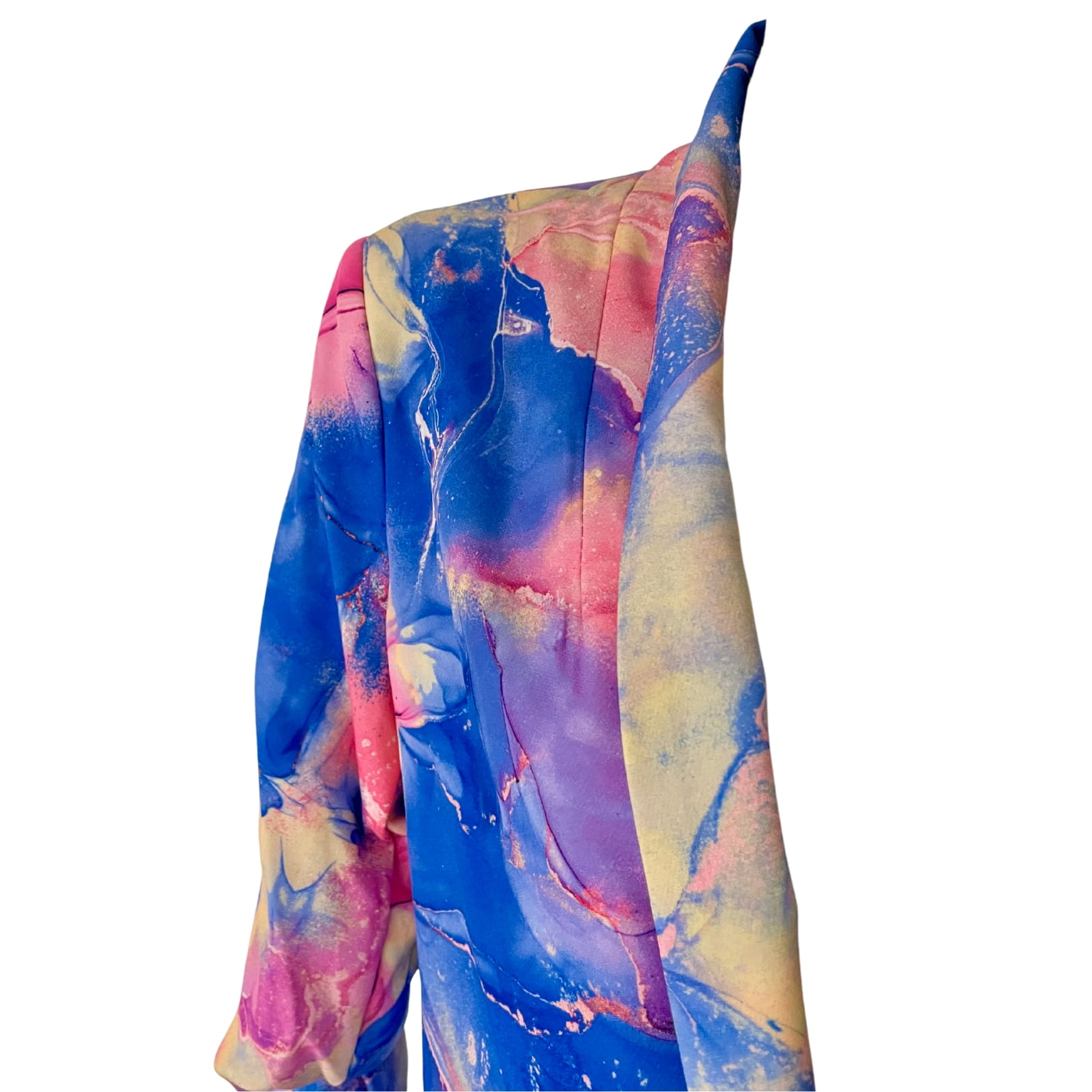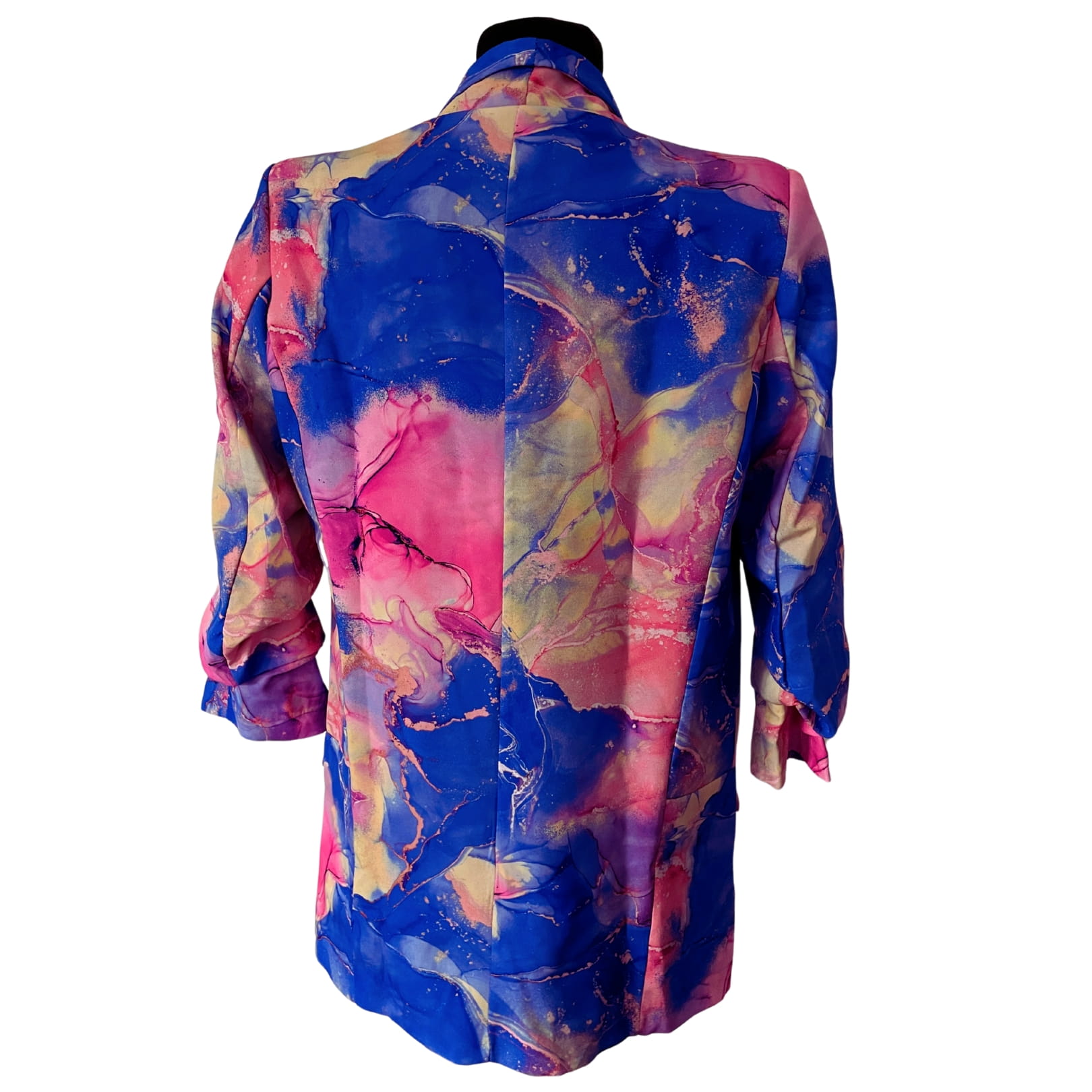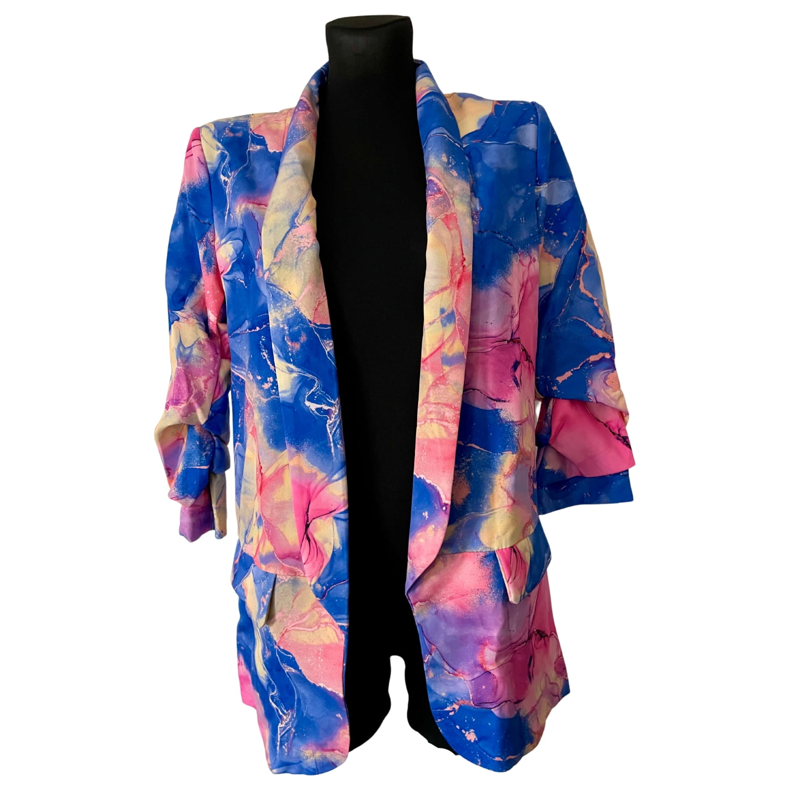 Awangardowa włoska damska marynarka niebiesko-różowo-żółta, z marszczonymi rękawami 7/8 - r. uniwersalny