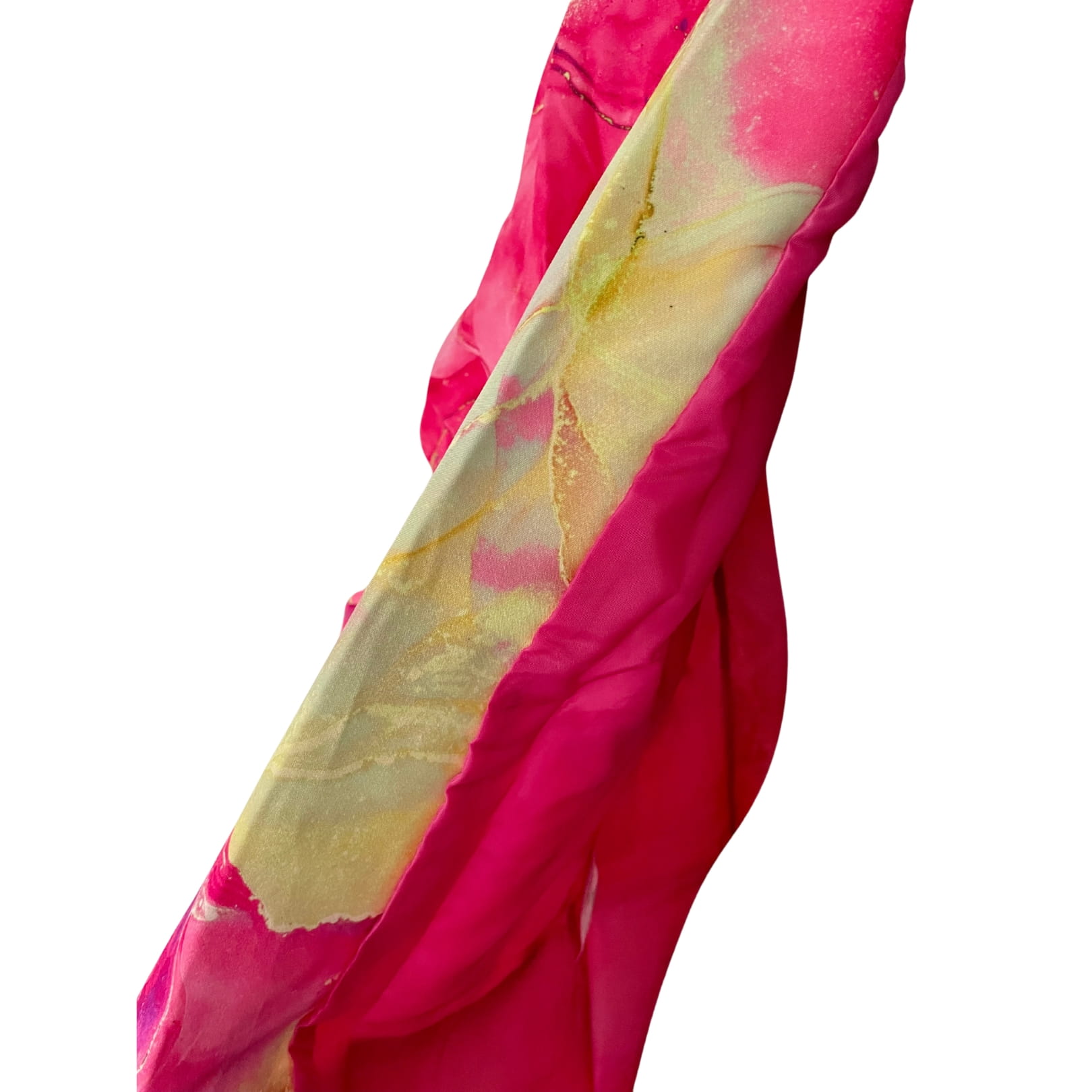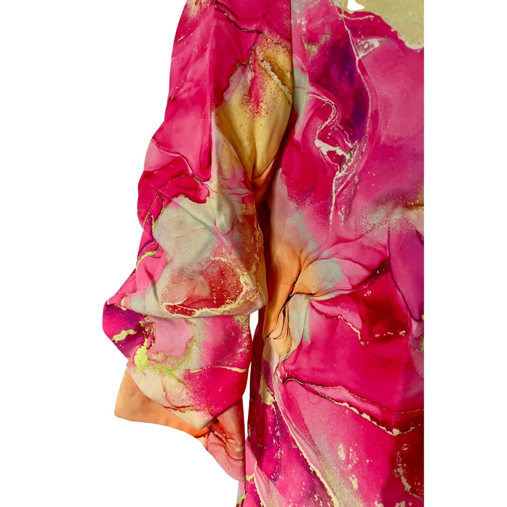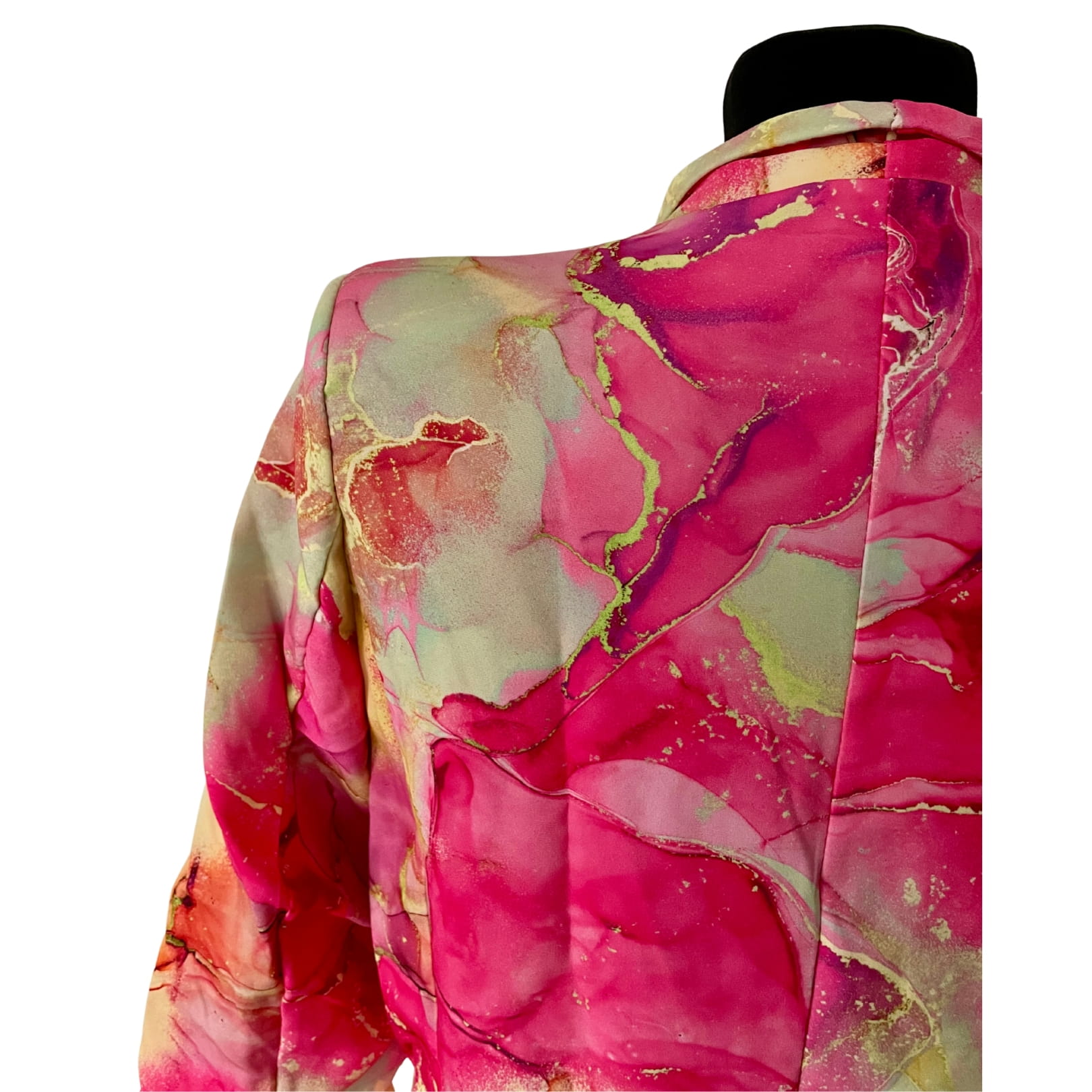 Awangardowa włoska damska marynarka różowo-żółta, z marszczonymi rękawami 7/8 - r. uniwersalny