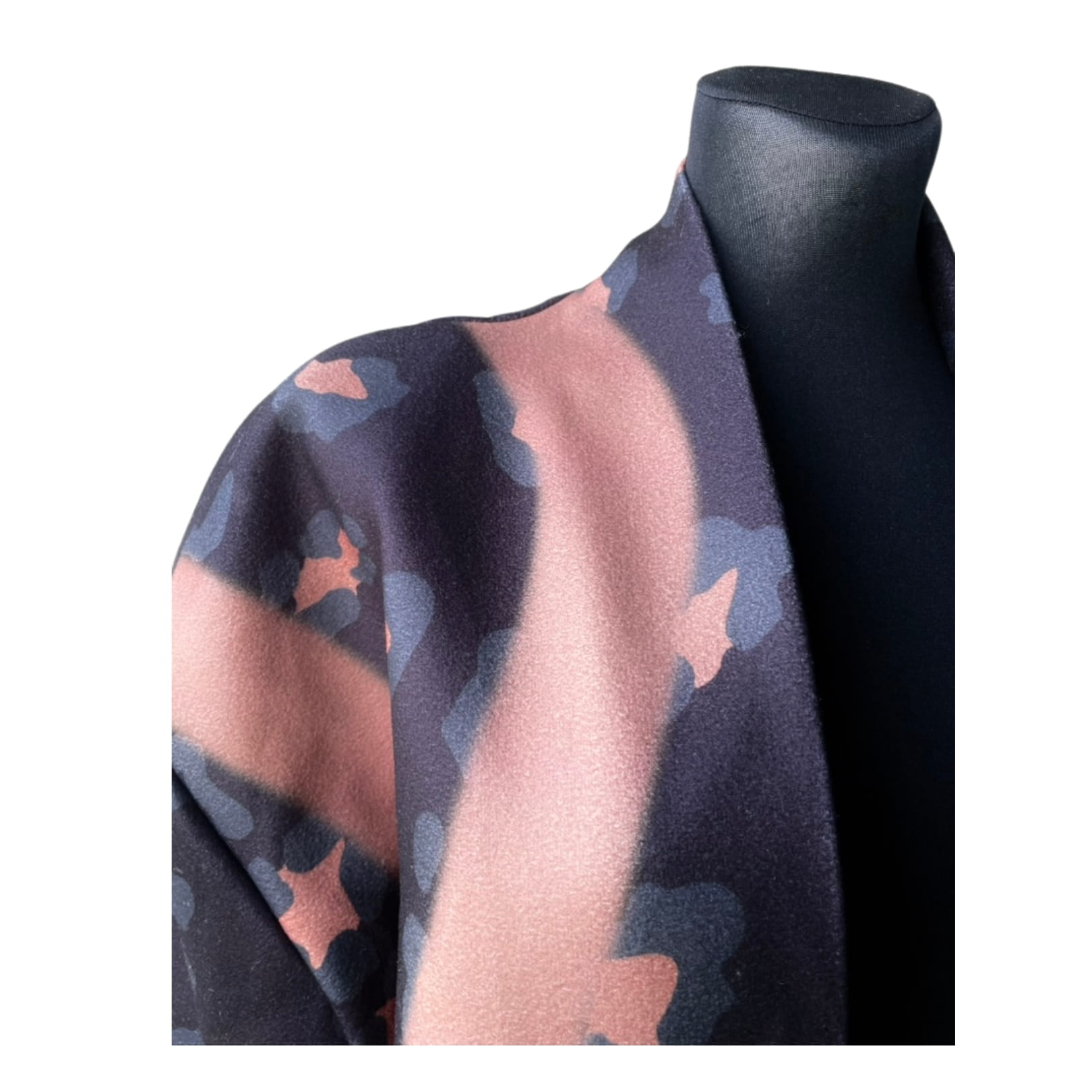 Awangardowy włoski płaszcz oversize w kwiatowe wzory, z ozdobnymi dżetami