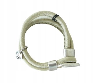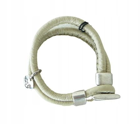 Skórzana bransoletka w beżowym kolorze ze srebrnym zapięciem BY DZIUBEKA