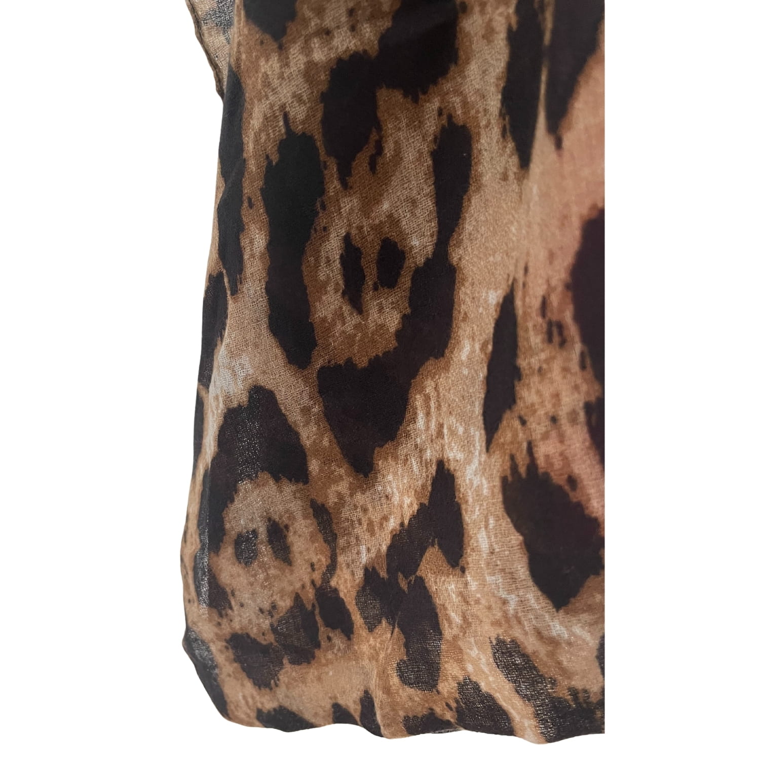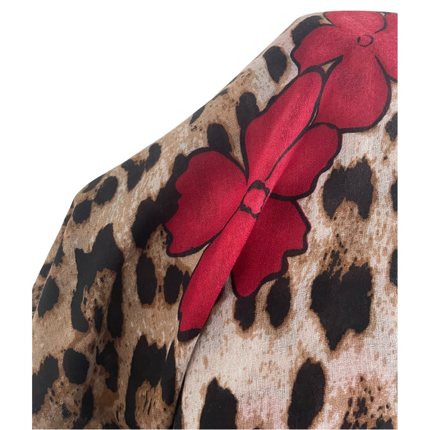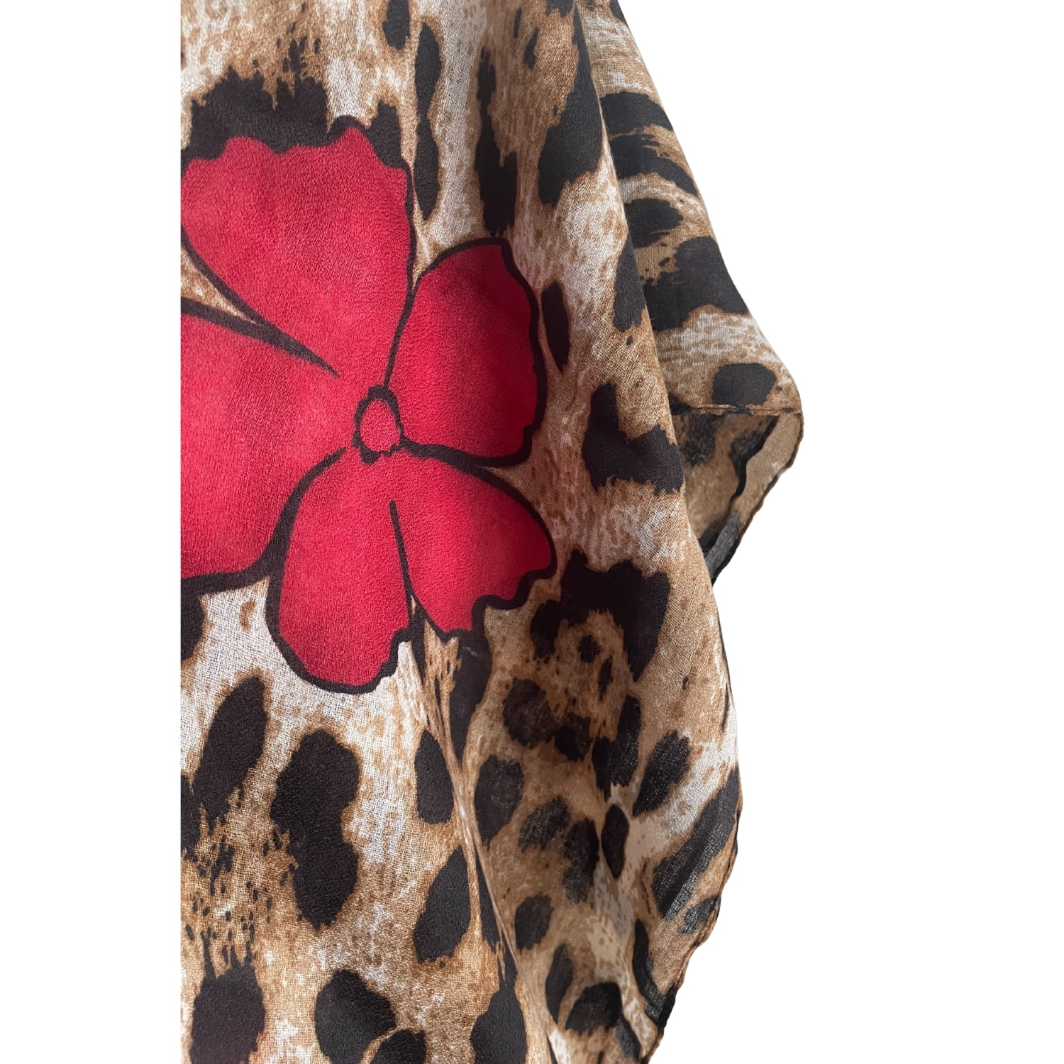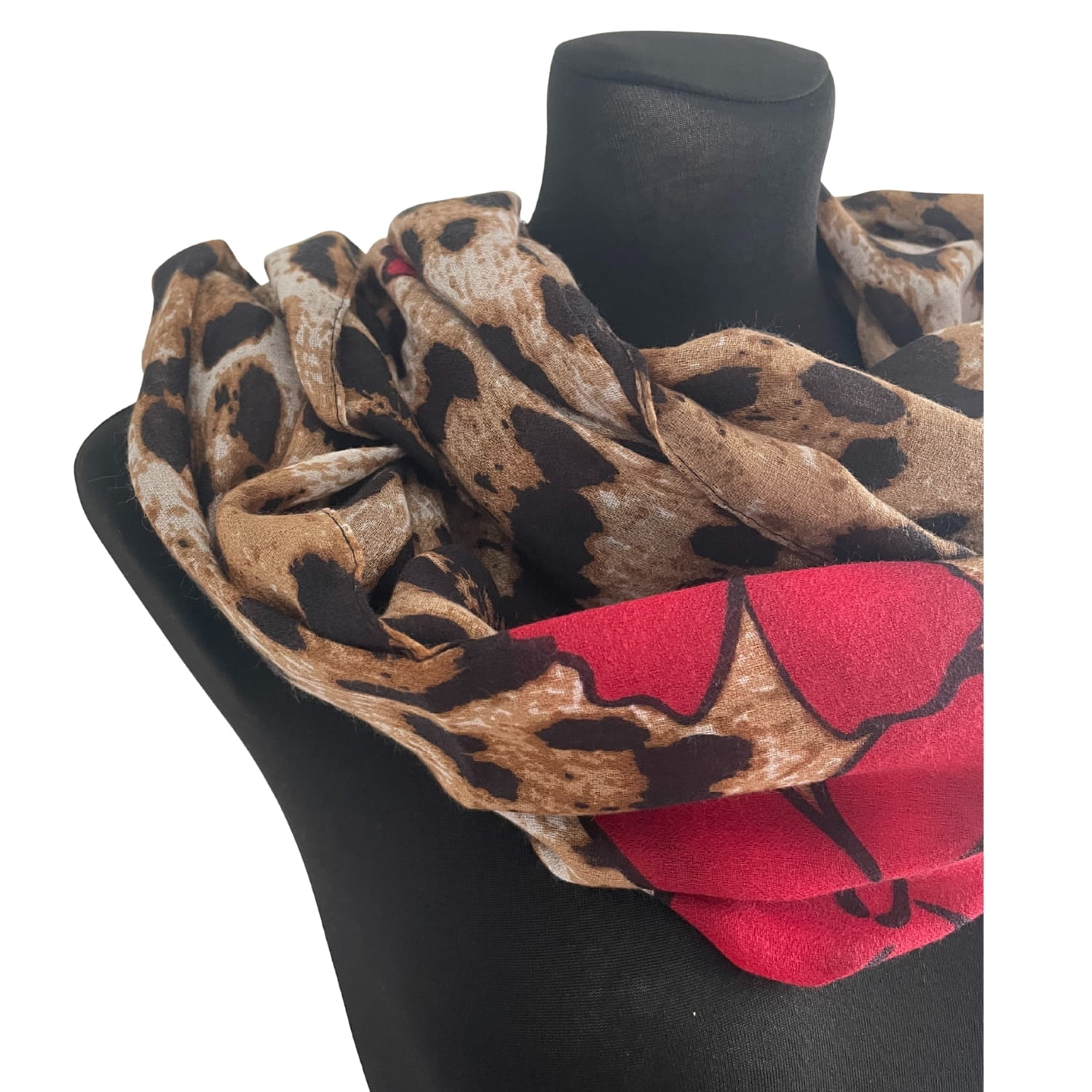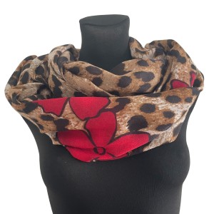 Beżowy damski szal komin w panterkę, z dużymi czerwonymi kwiatami - ok. 95 x 70 cm