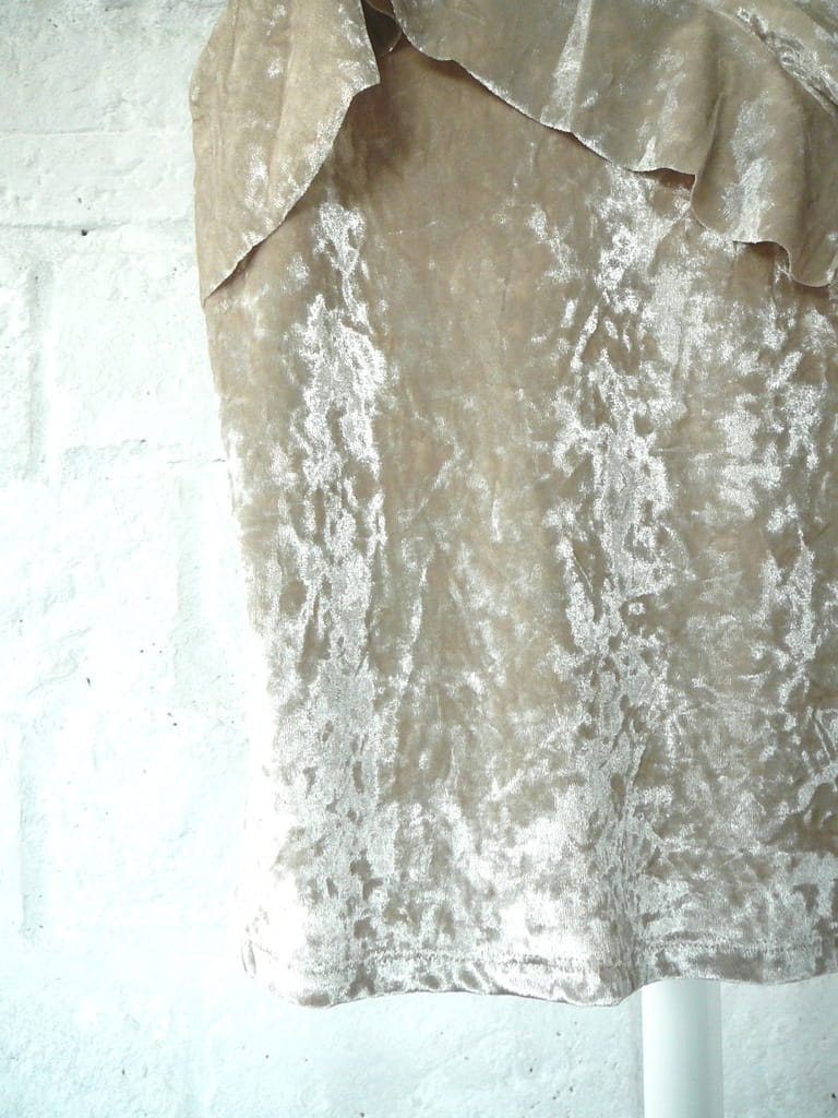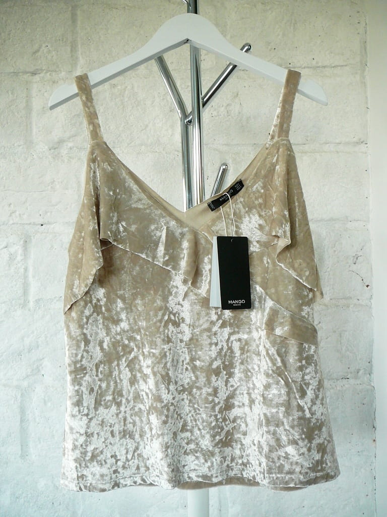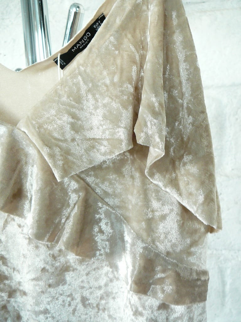 Beżowy, welurowy top z falbaną MANGO