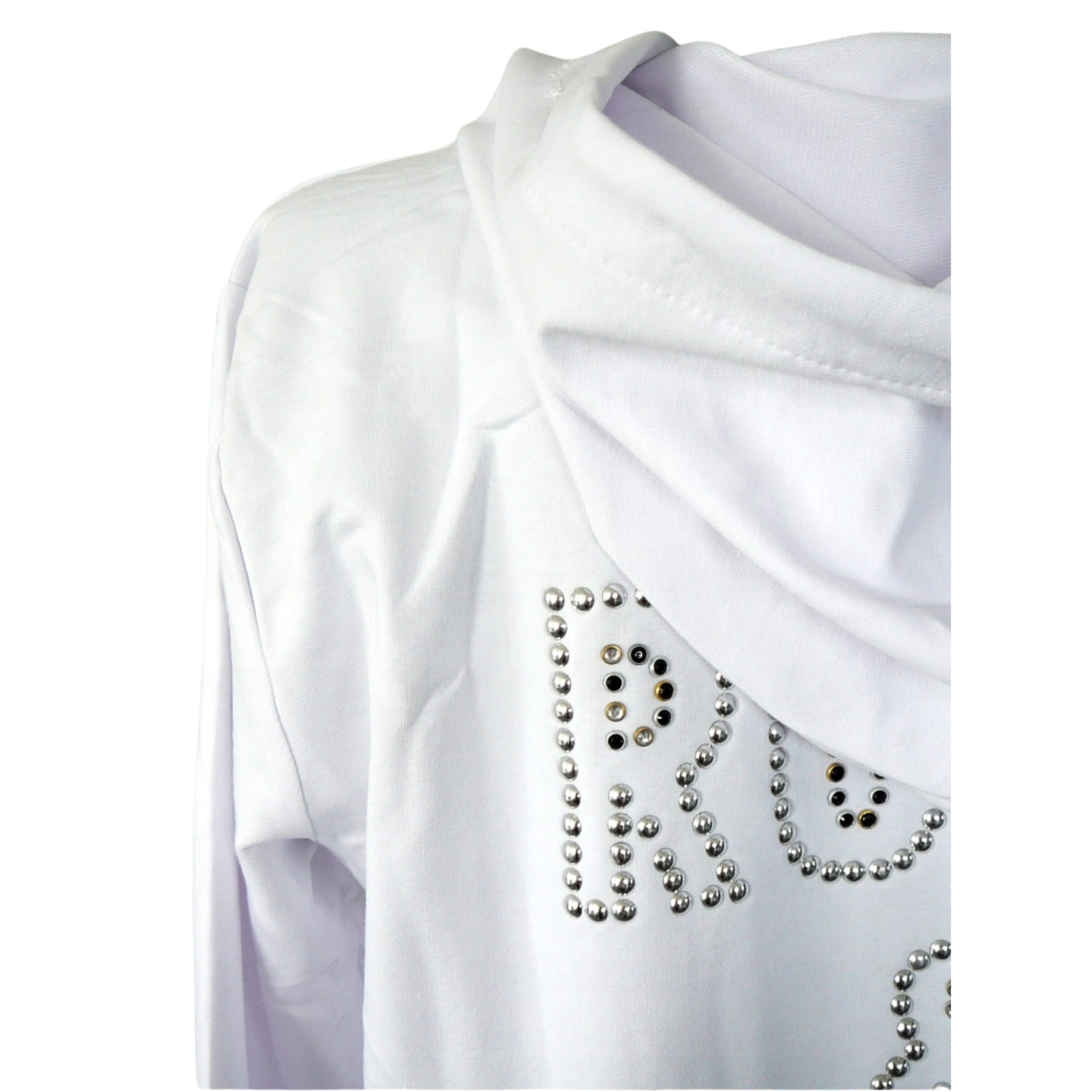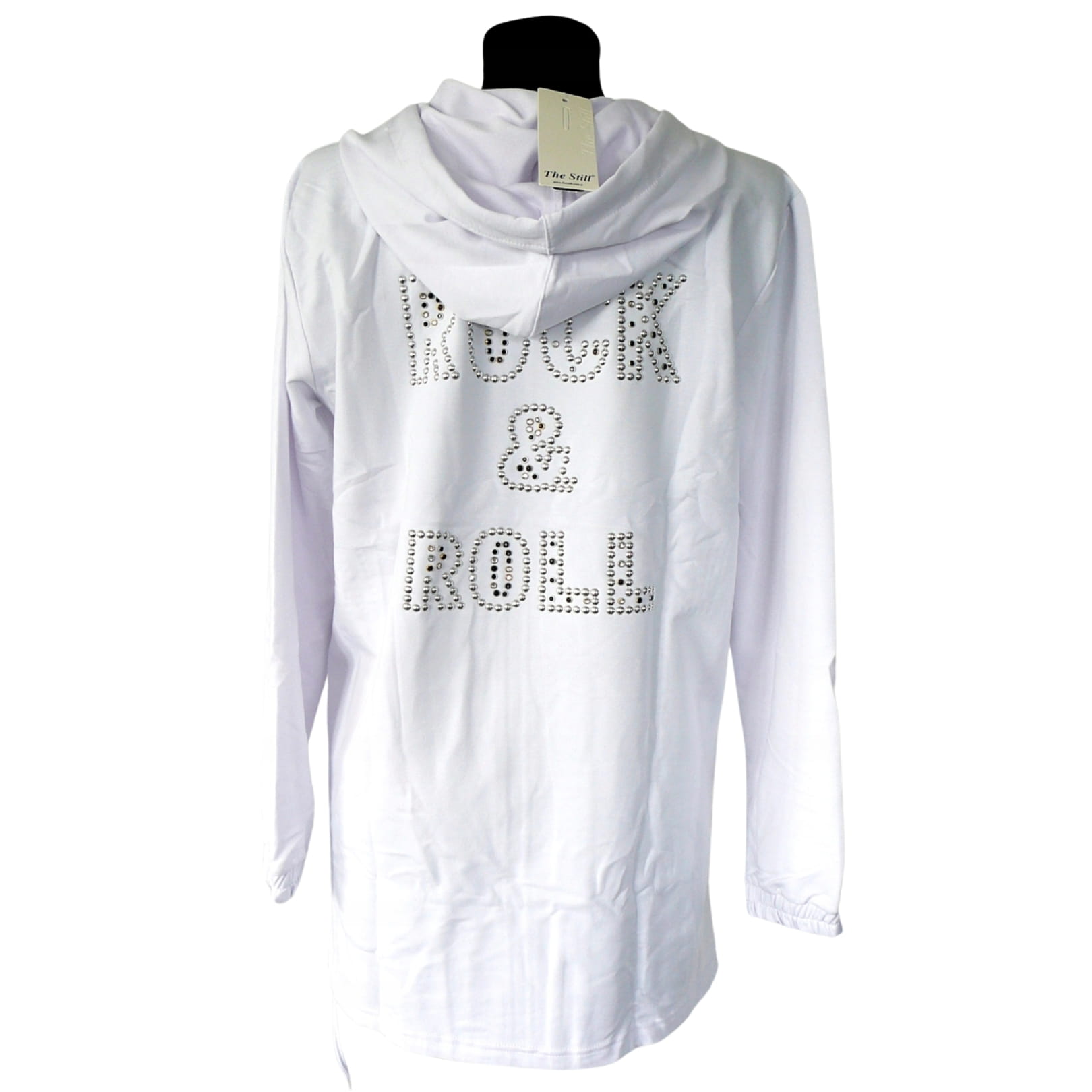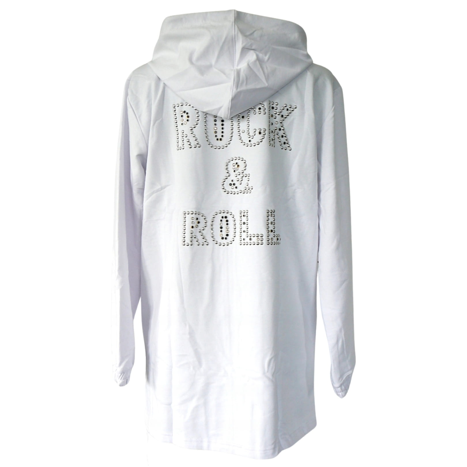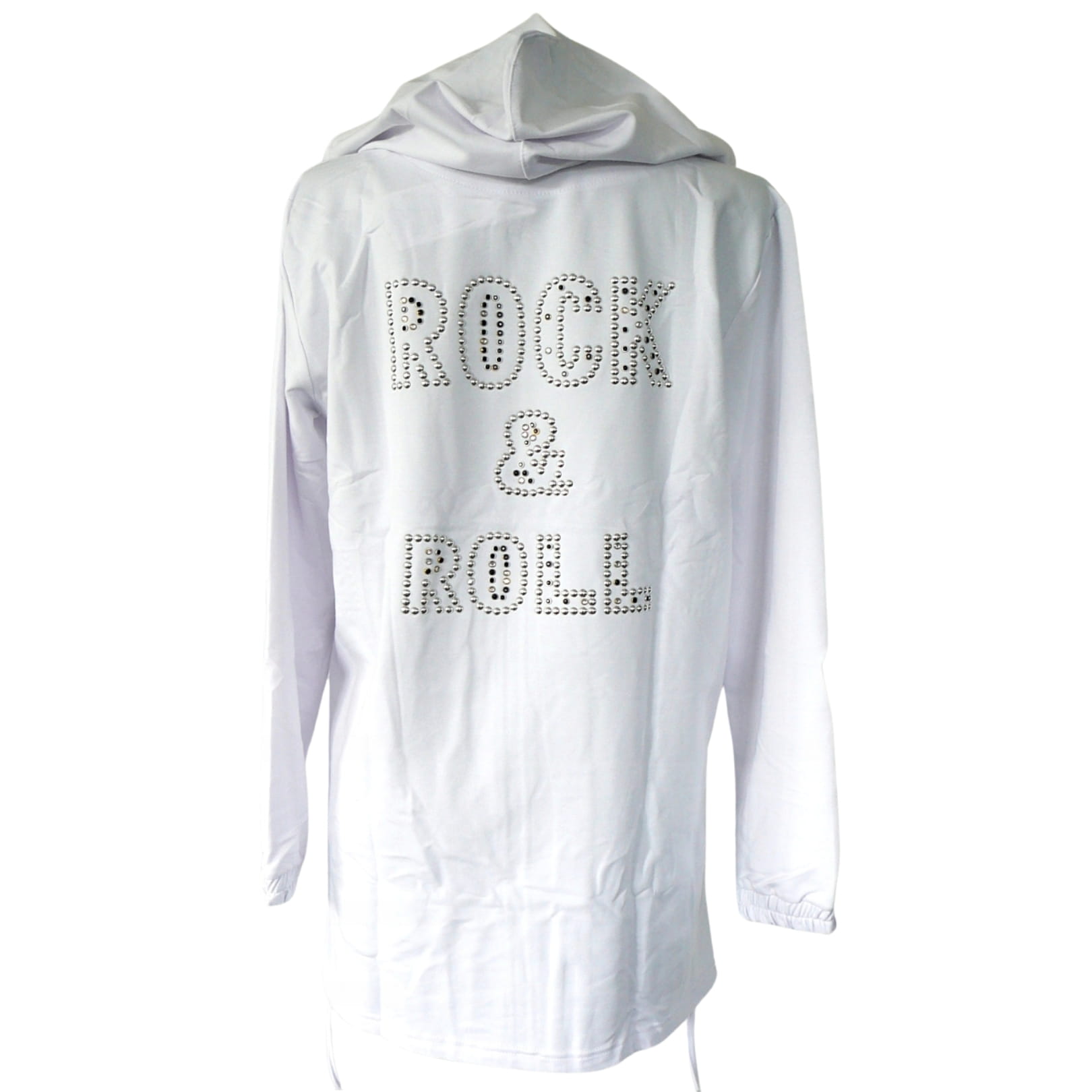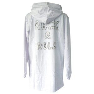 Biała luźna bluza zapinana na zamek, z kapturem i napisem "ROCK&ROLL" na plecach - na przekór schematom!