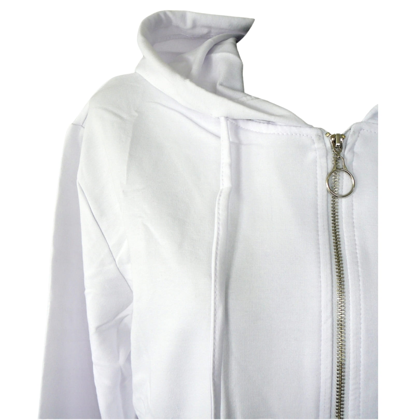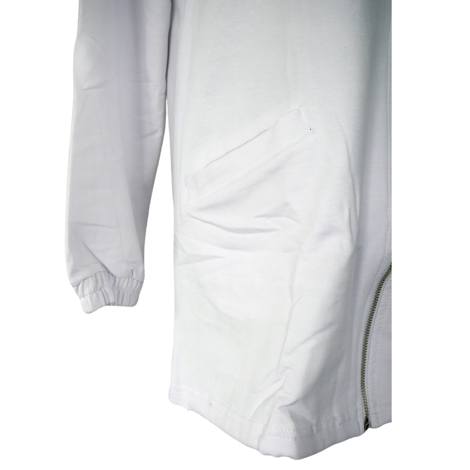 Biała luźna damska bluza na zamek, z kapturem, kieszeniami, długim rękawem i napisem ROCK&ROLL na plecach - r. uniwersalny