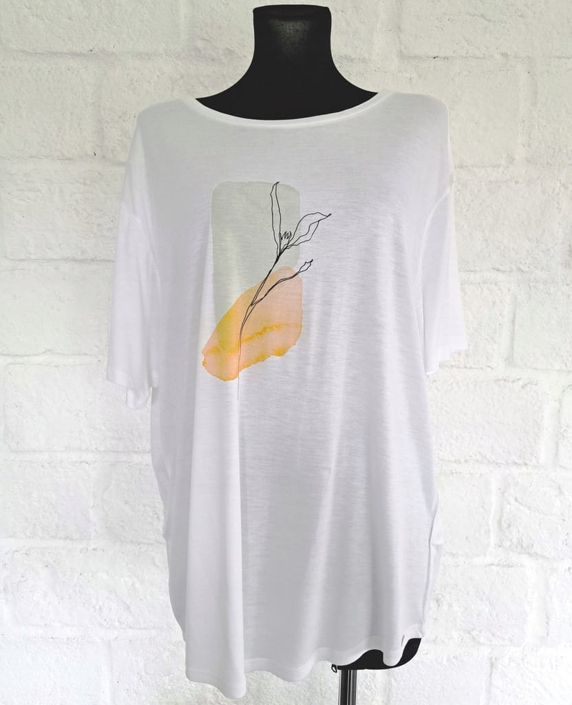Biała luźna bluzka z pistacjowo-brzoskwiniowym nadrukiem BIG STAR