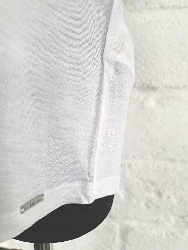 Biała luźna damska bluzka z kolorowym nadrukiem i krótkim rękawem - rozmiar 36 S - Big Star