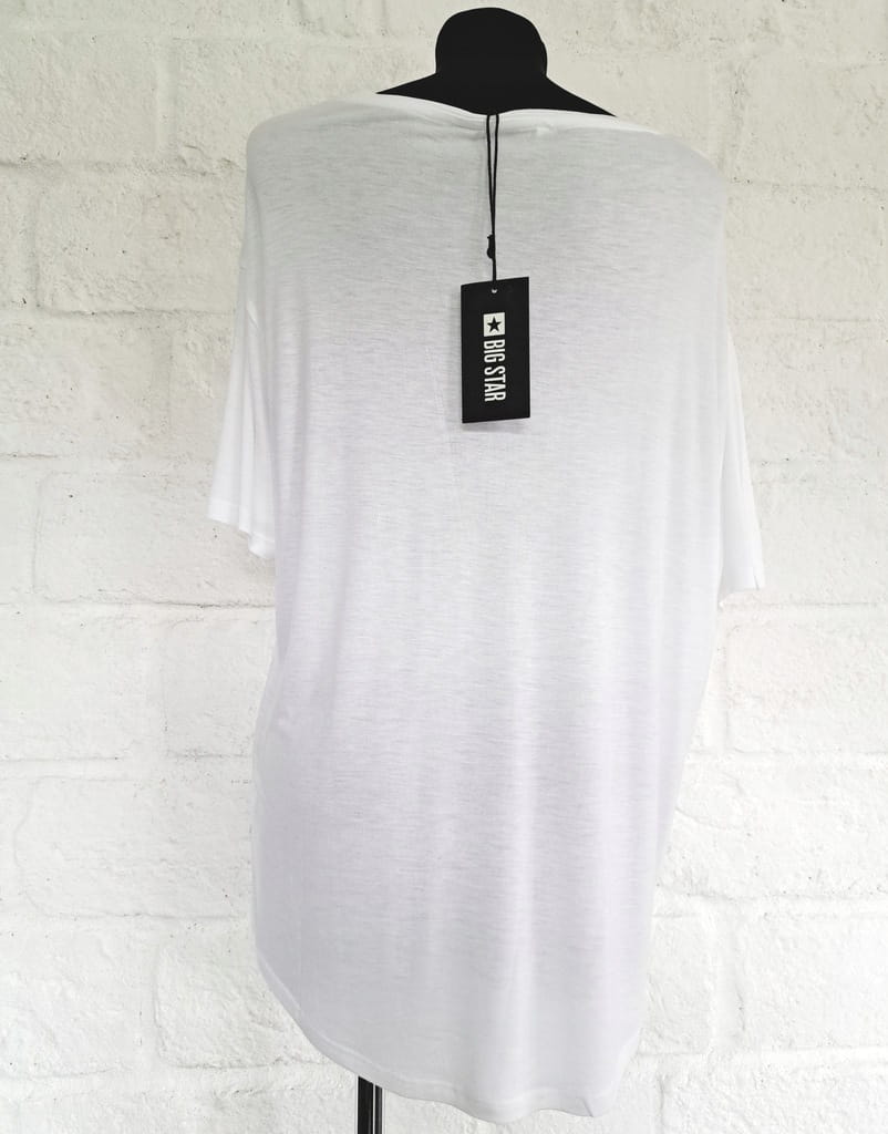 Biała luźna damska bluzka z oryginalnym kolorowym nadrukiem i krótkim rękawem - rozmiar 48 4XL XXXXL - Big Star