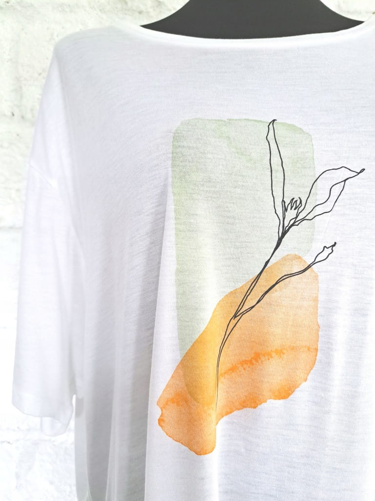 Biała luźna bluzka z pistacjowo-brzoskwiniowym nadrukiem BIG STAR