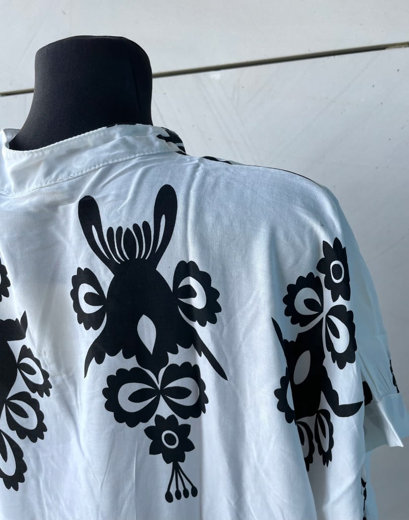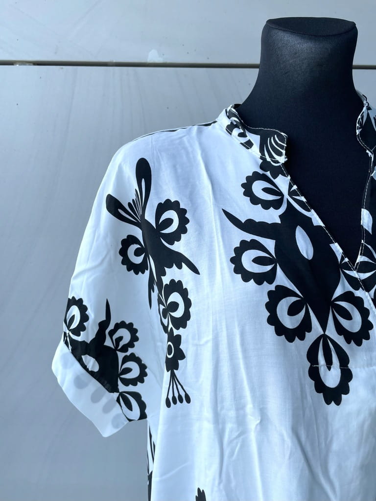 Włoska letnia długa biała koszulowa sukienka w czarne wzory