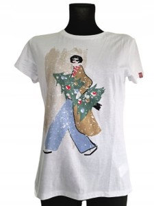 Biały t-shirt bluzka ze świątecznym nadrukiem, z krótkim rękawem - LIMITOWANA KOLEKCJA! - rozmiar 40 L - Big Star