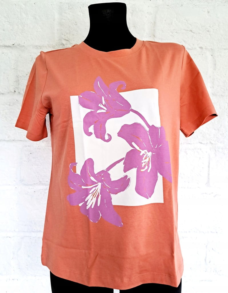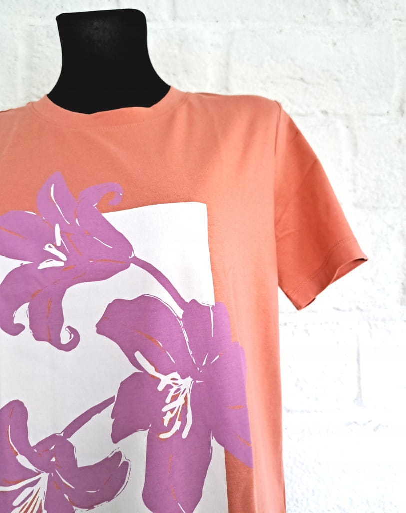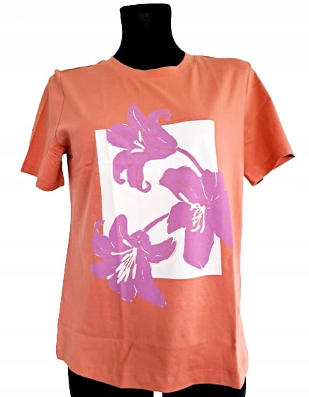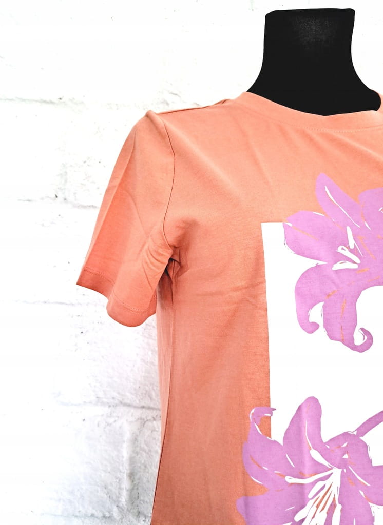 Brzoskwiniowa bluzka/ t-shirt z kwiatowym nadrukiem edc by ESPRIT