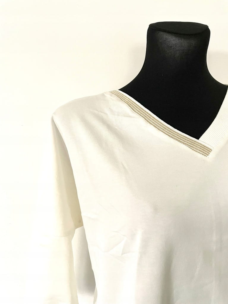 Bluzka damska w kolorze ecru ze złotą nicią przy dekolcie i rękawem 3/4 - rozmiar 40/42 L/XL