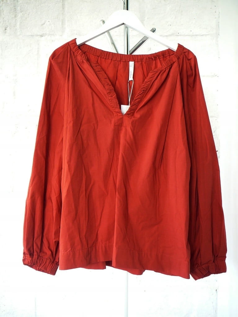 Ceglasta luźna damska bluzka w stylu boho, z długim rękawem, rozcięciami po bokach i dekoltem typu V - rozmiar 38 M - Mango