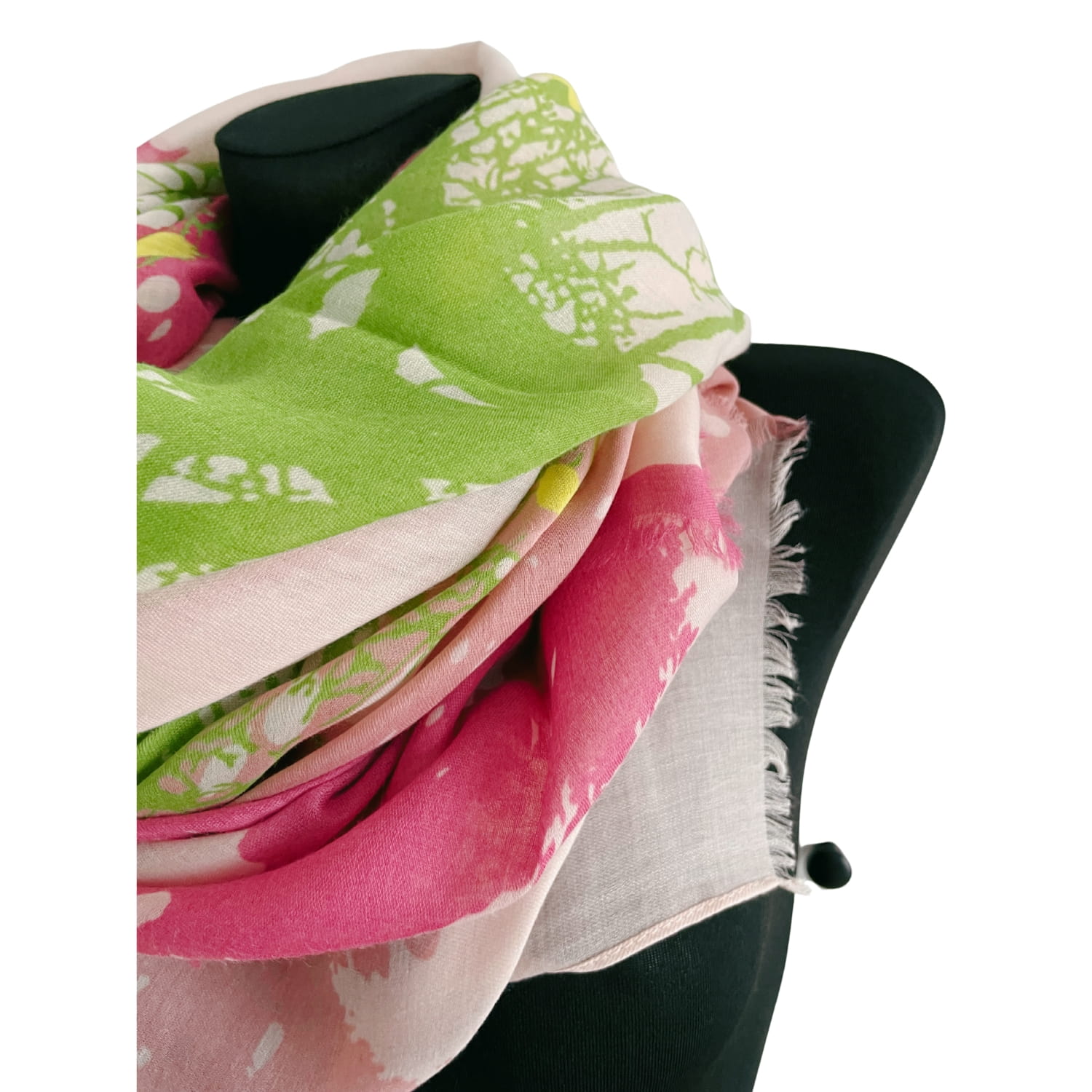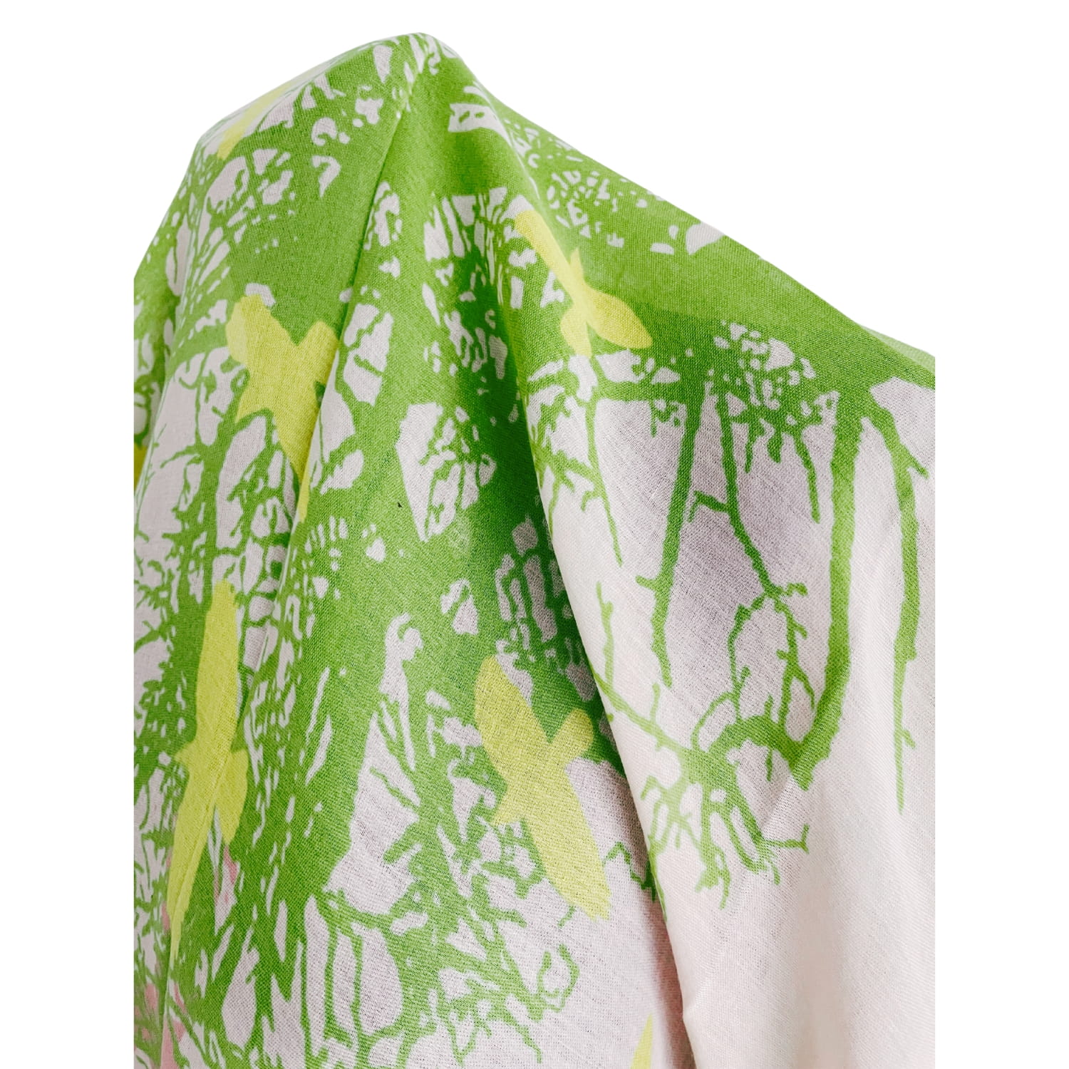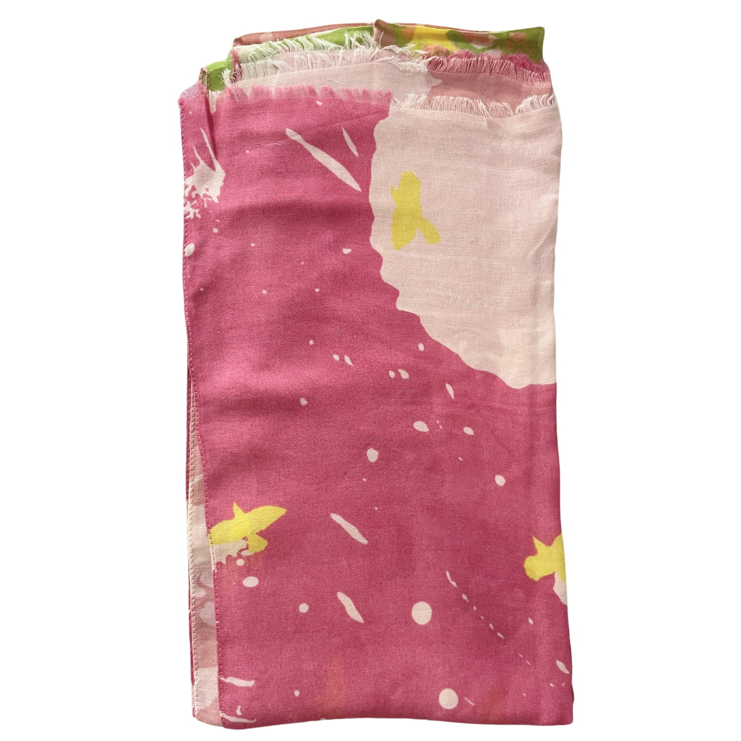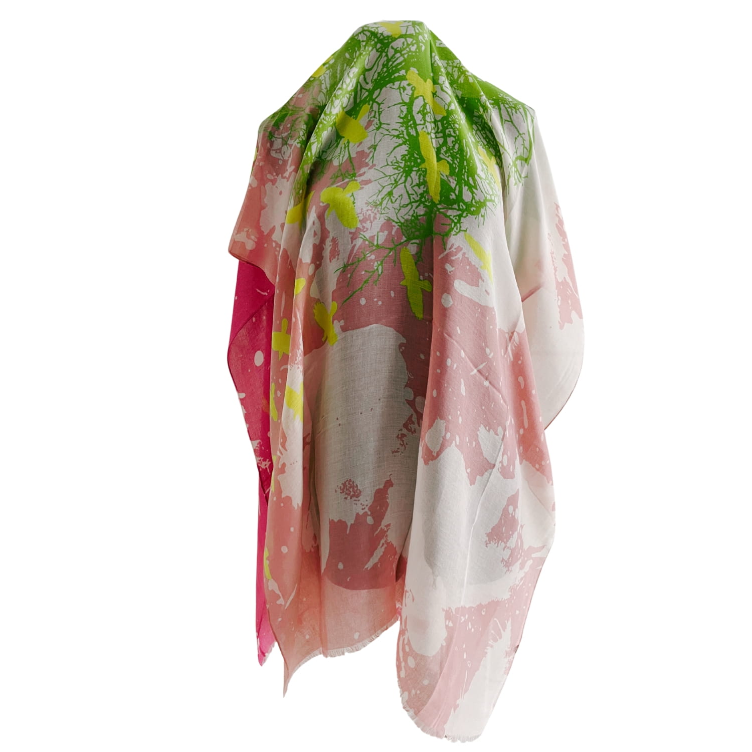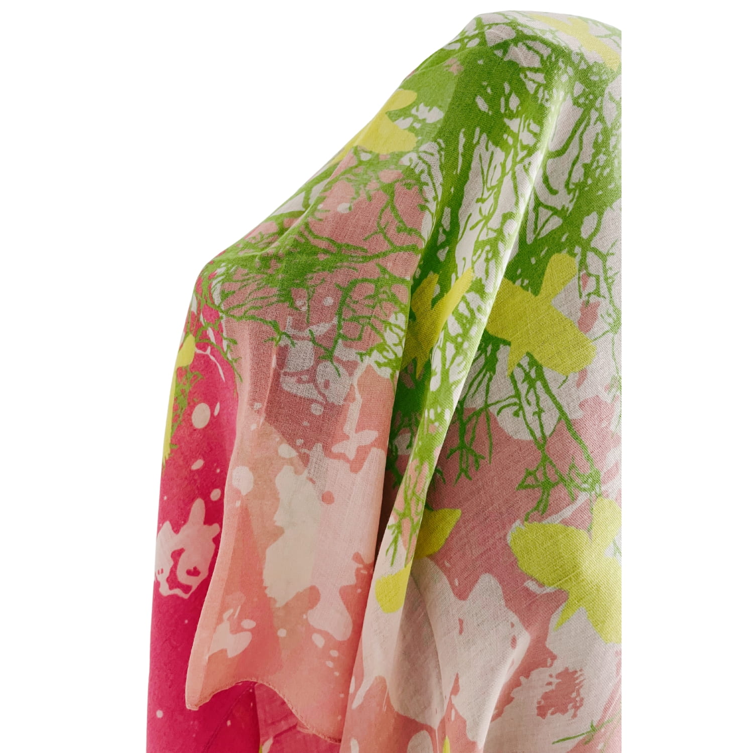 Chusta damska różowo-zielono-żółta z motywem ptaków i drzewa - ok. 170 x 90 cm