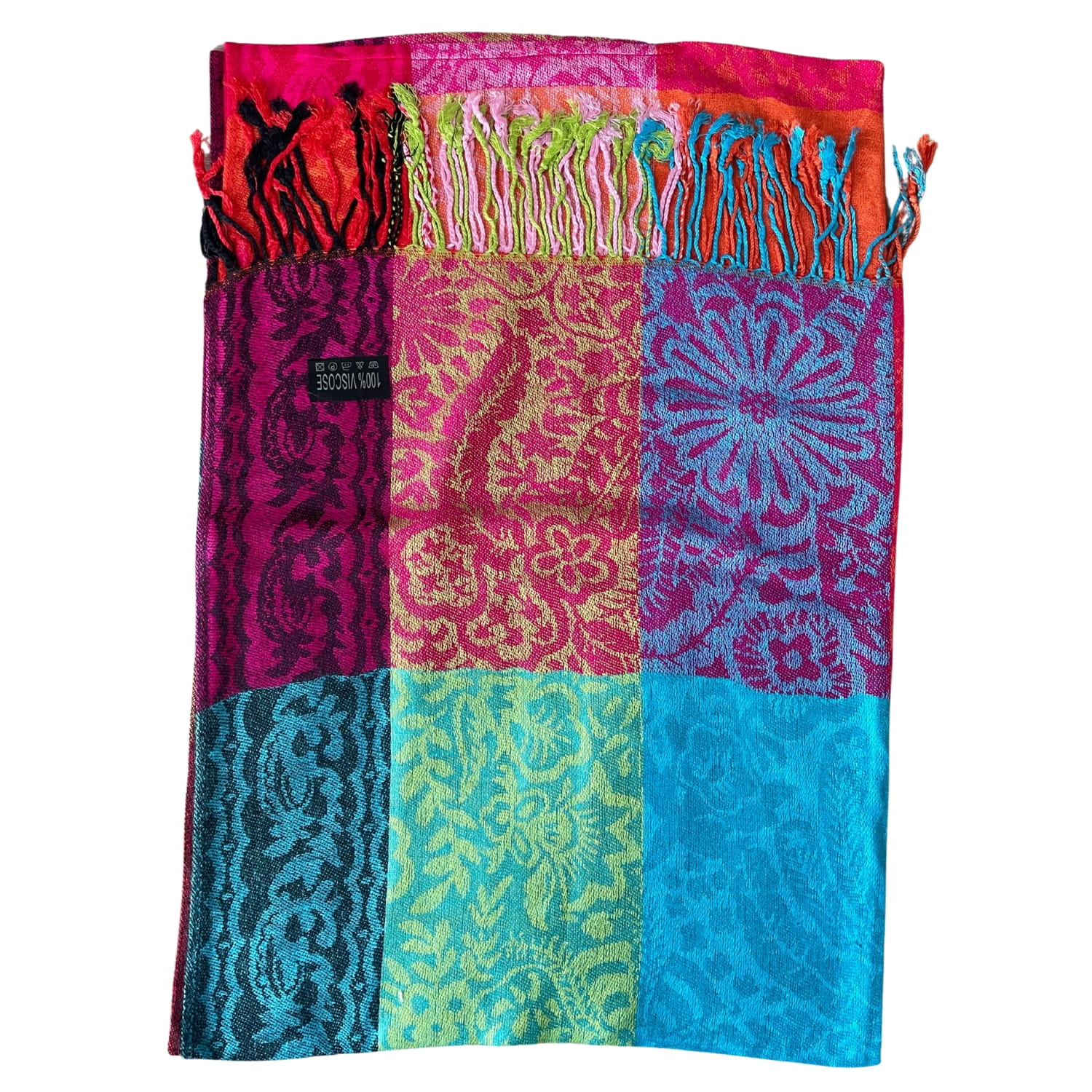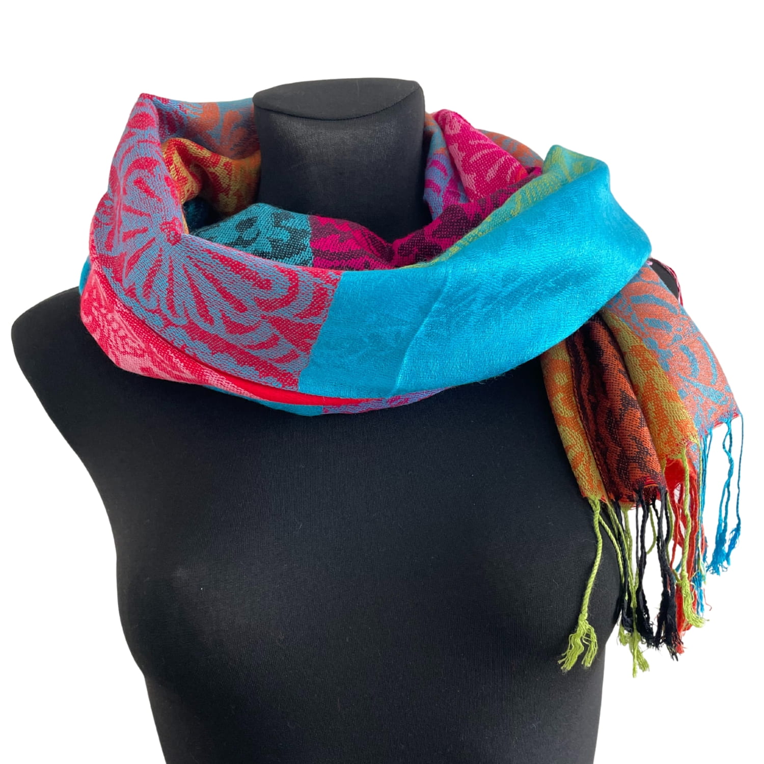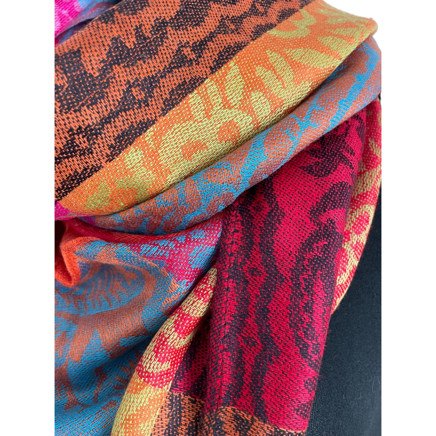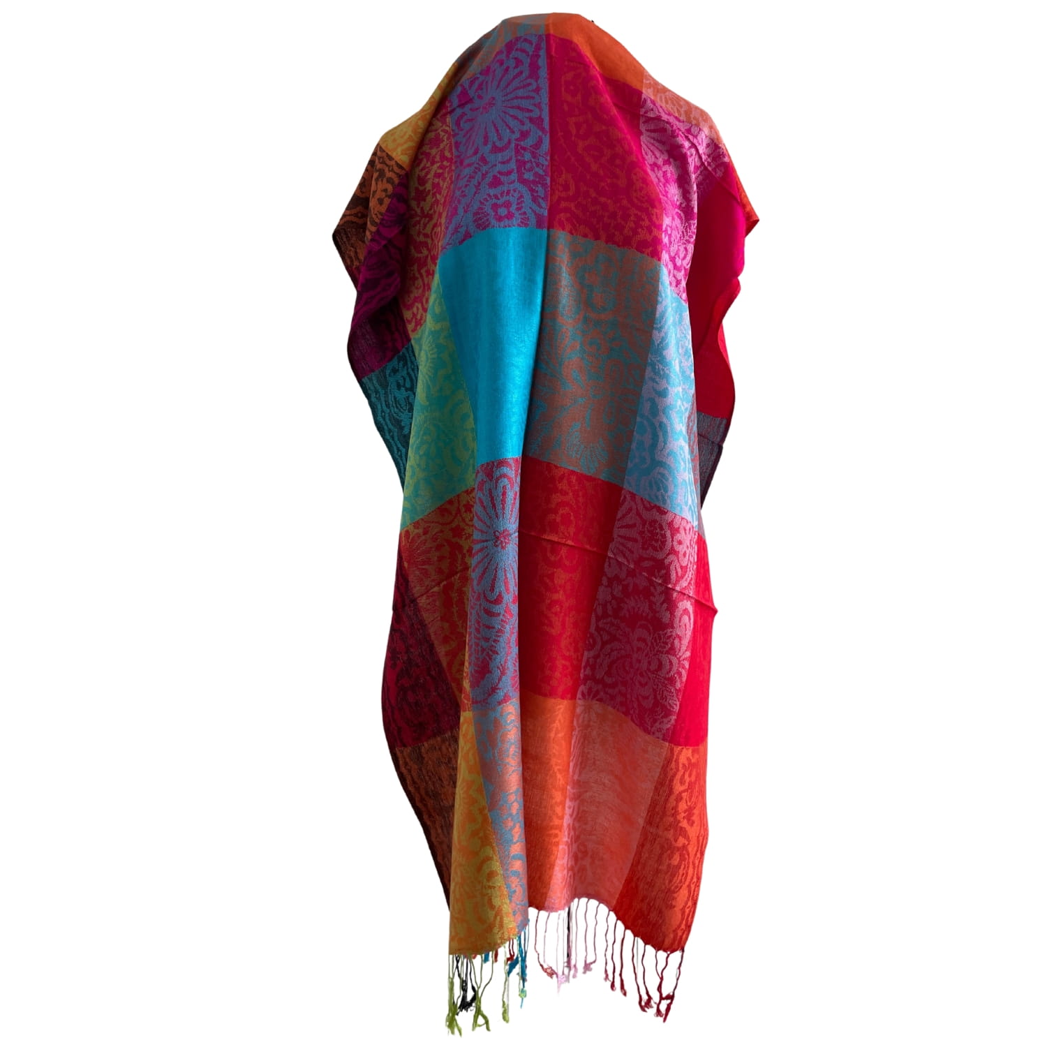 Chusta damska wielokolorowa/ cienki szal z frędzlami, żywe kolory /wariant 3/ - ok. 190 x 65 cm