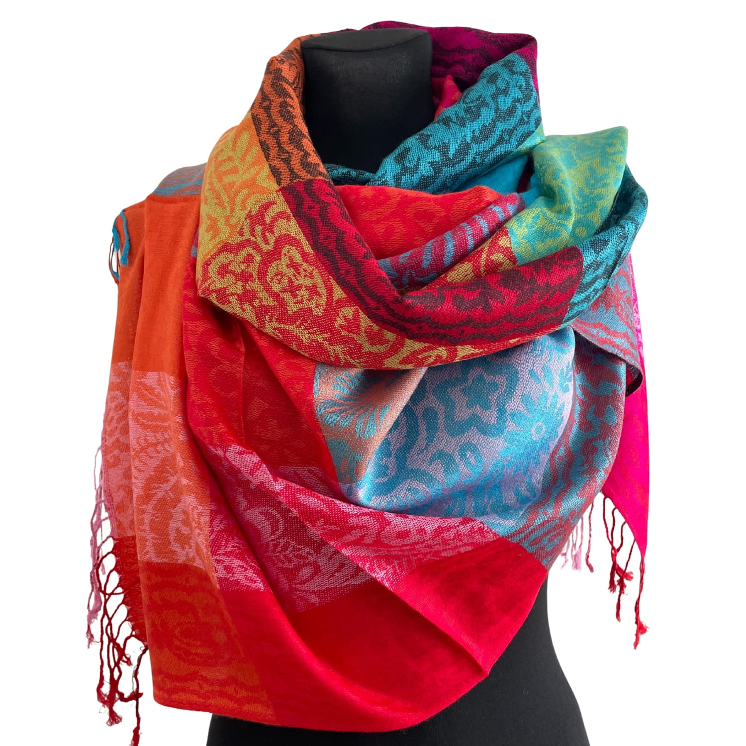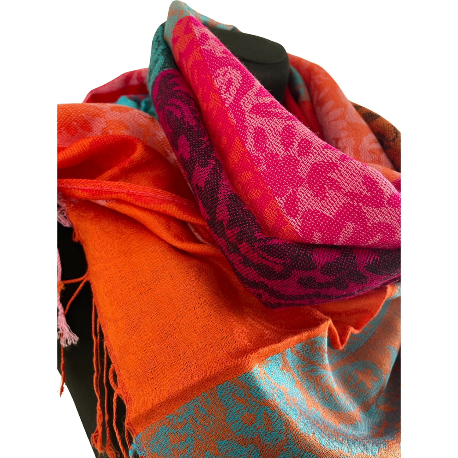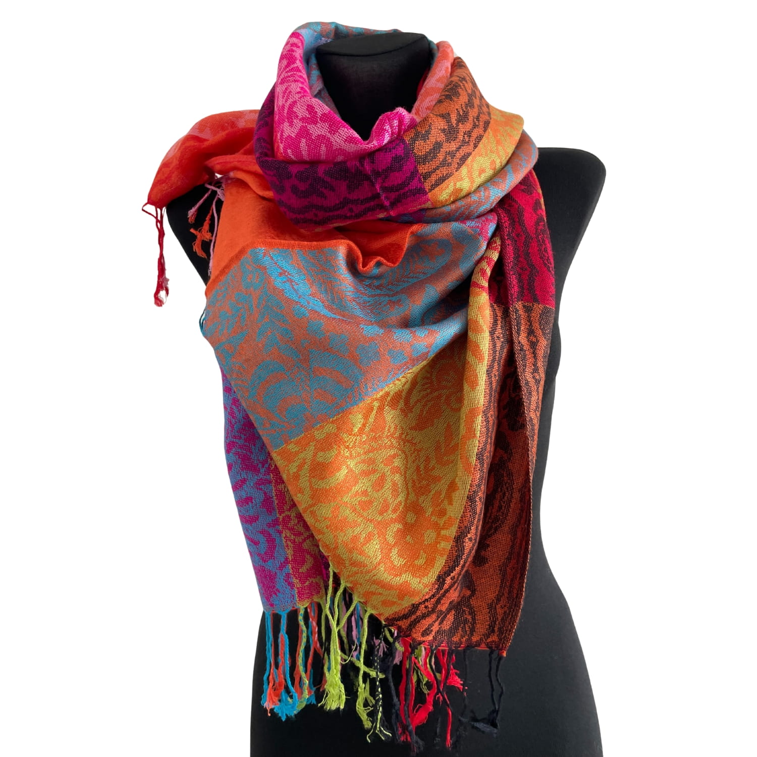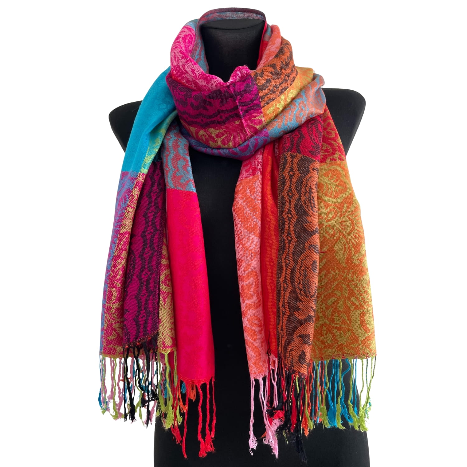 Chusta damska wielokolorowa/ cienki szal z frędzlami, żywe kolory /wariant 3/ - ok. 190 x 65 cm