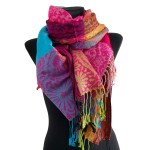 Elegancki, wielokolorowy cienki szal/ chusta z frędzlami /wariant 3/