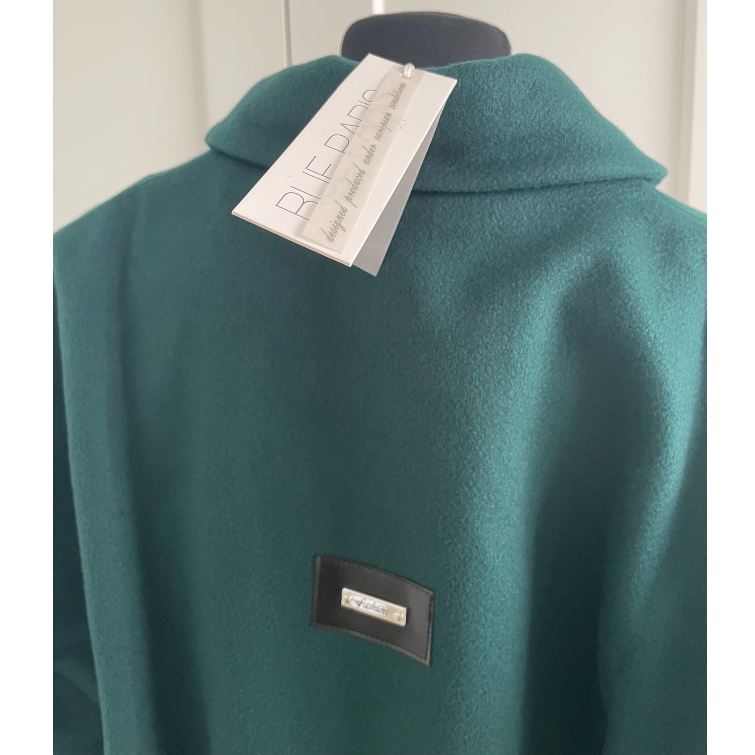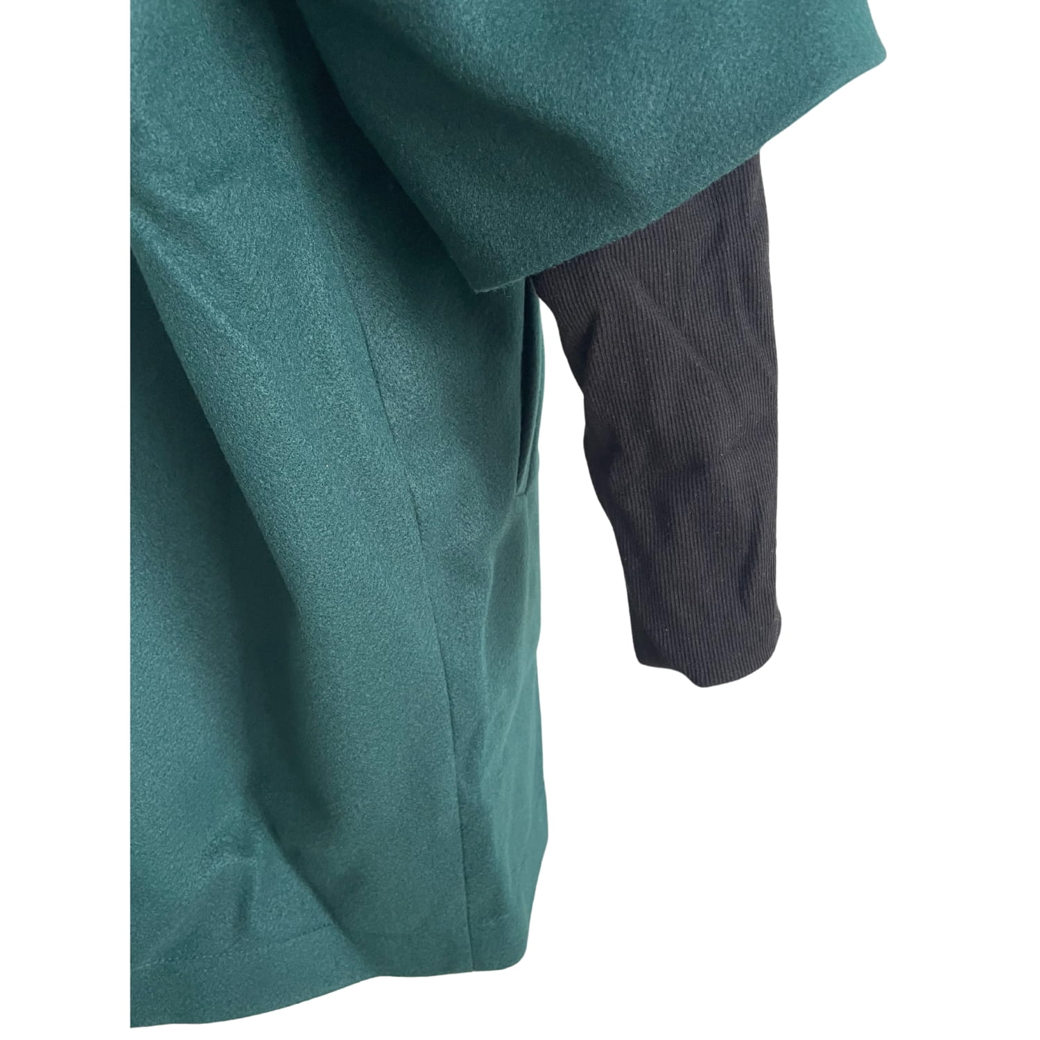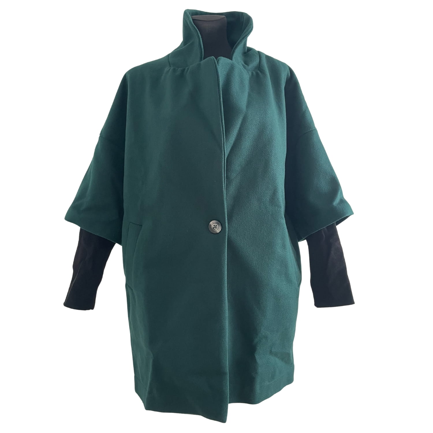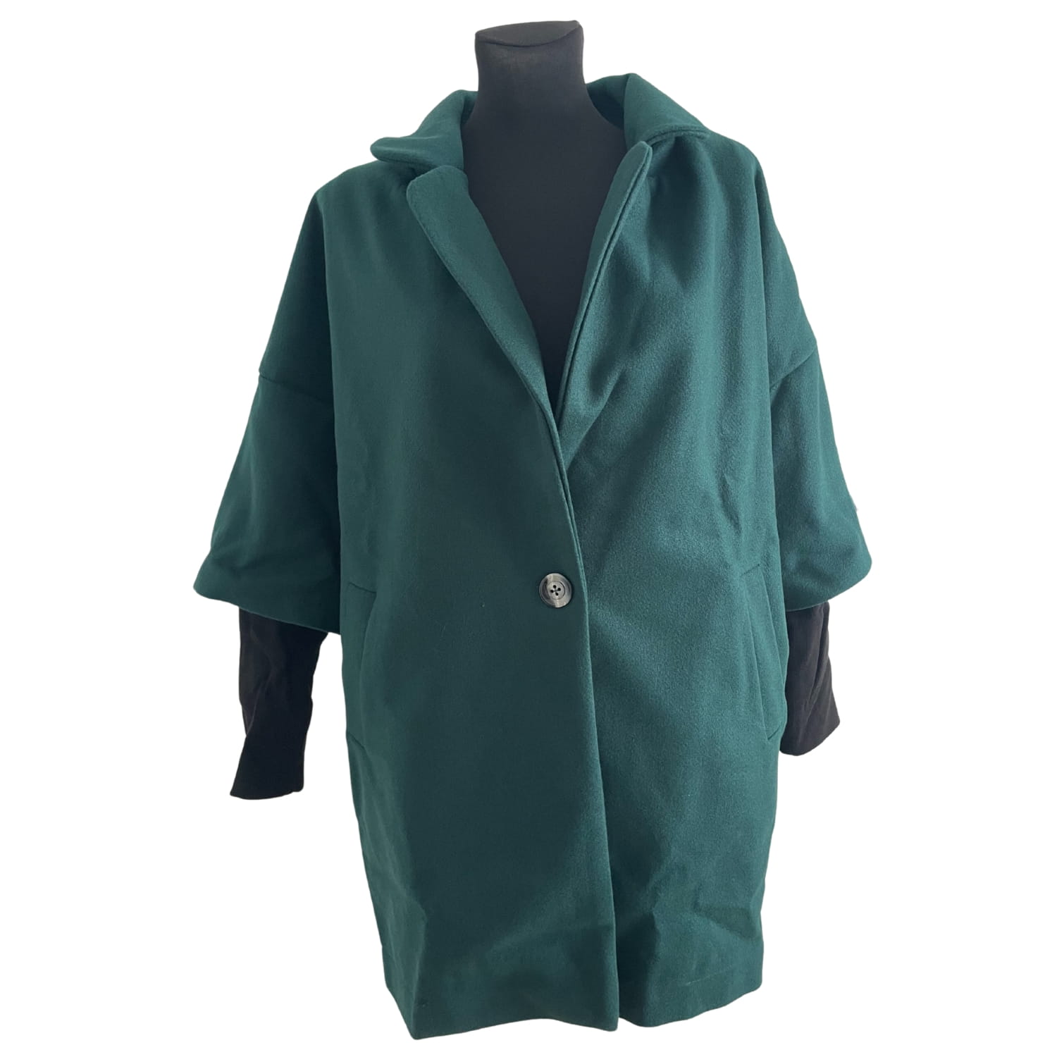 Ciemnozielony luźny damski polski płaszcz z podszewką, długim rękawem i kieszeniami - rozmiar 36/38 S/M