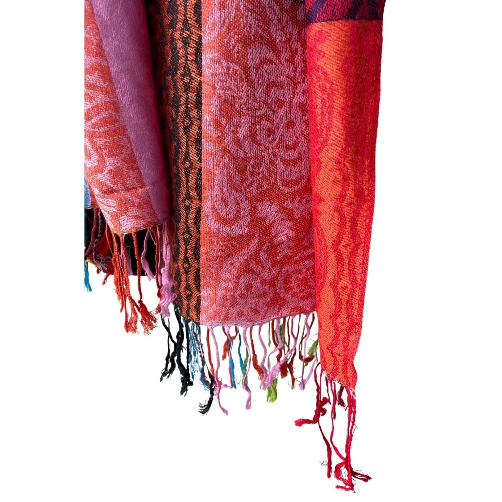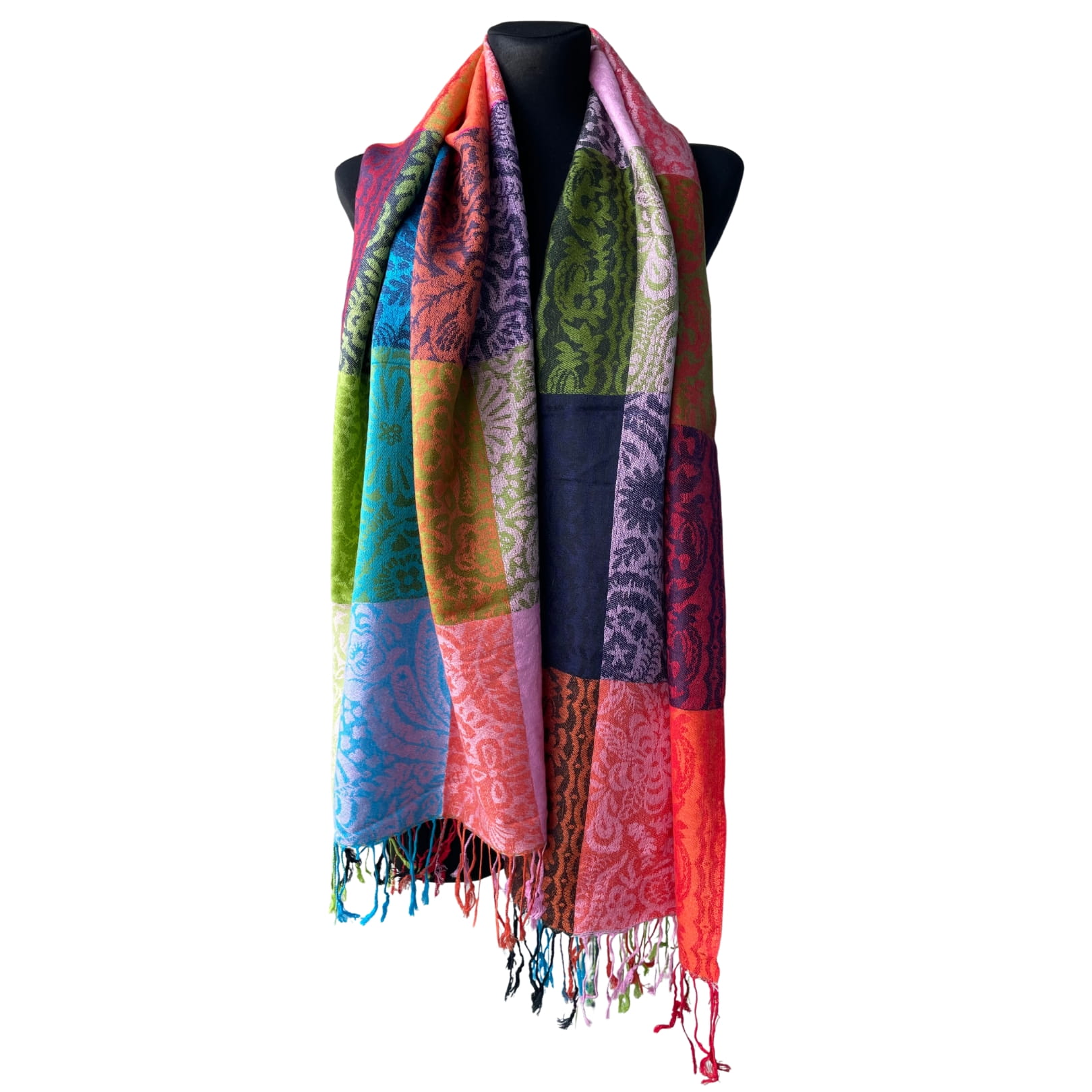 Cienka wielokolorowa damska chusta/ szal, z frędzlami, żywe kolory /wariant nr 2/ - ok. 190 x 65 cm