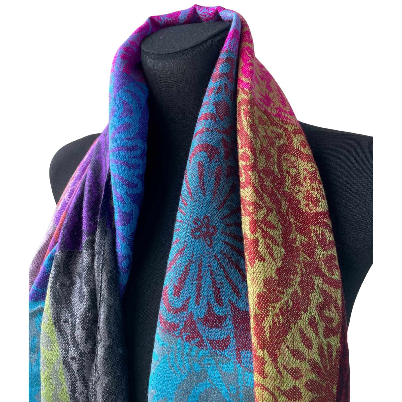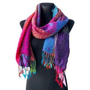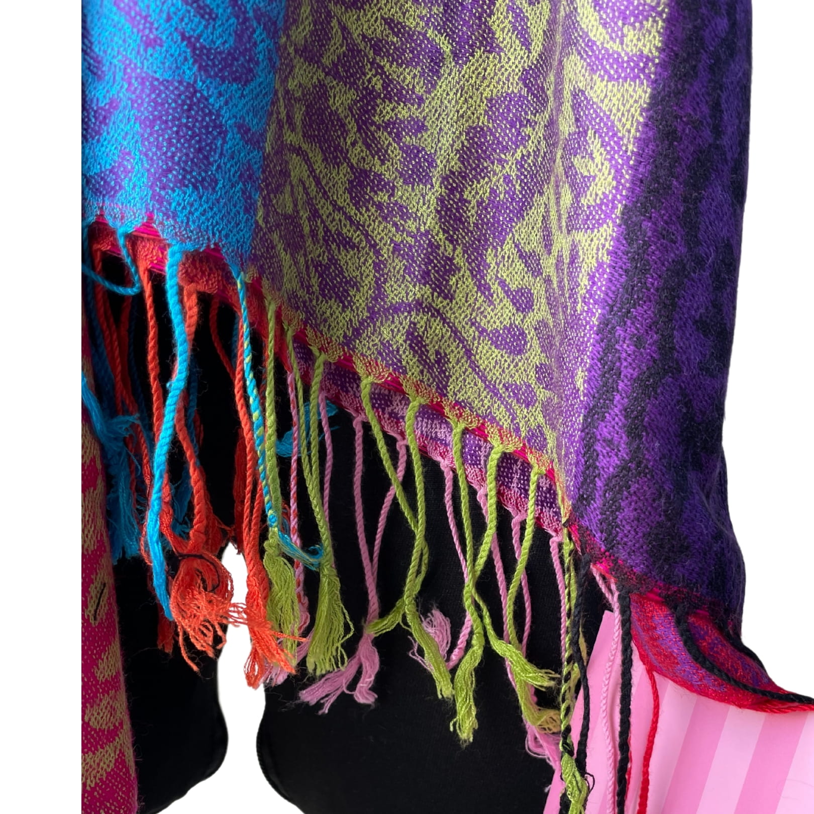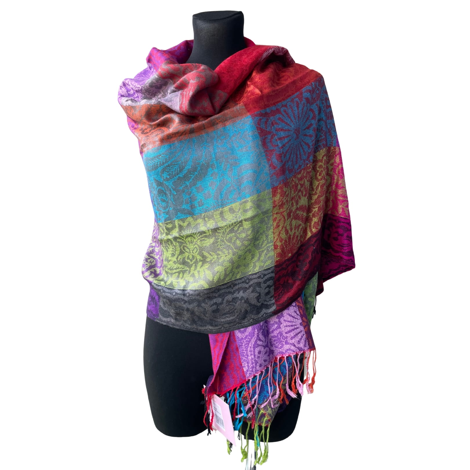 Elegancki, wielokolorowy cienki szal/ chusta z frędzlami /wariant nr 3/