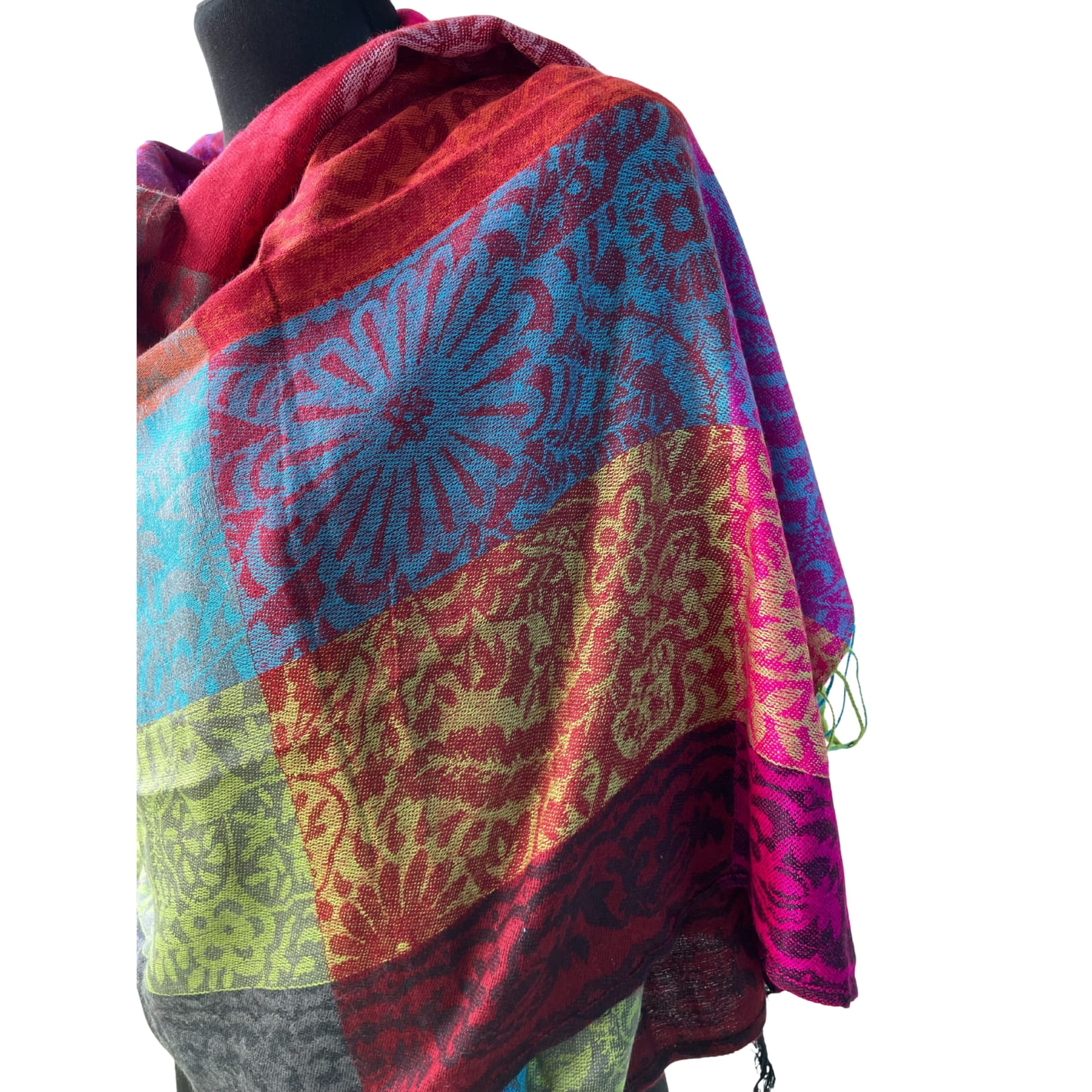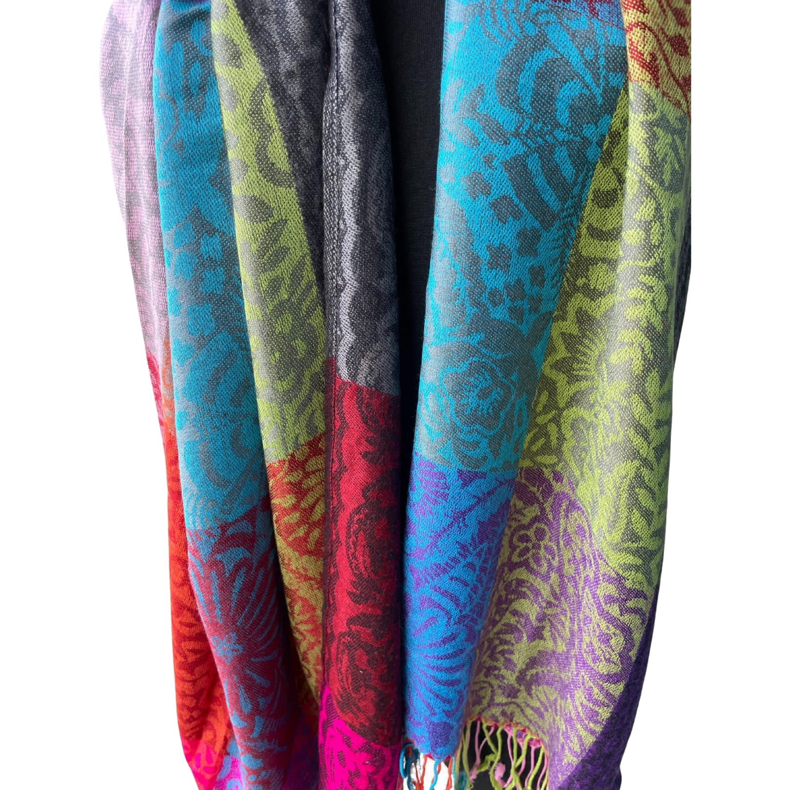Cienka wielokolorowa damska chusta/ szal, z frędzlami, żywe kolory /wariant nr 3/ - ok. 190 x 65 cm