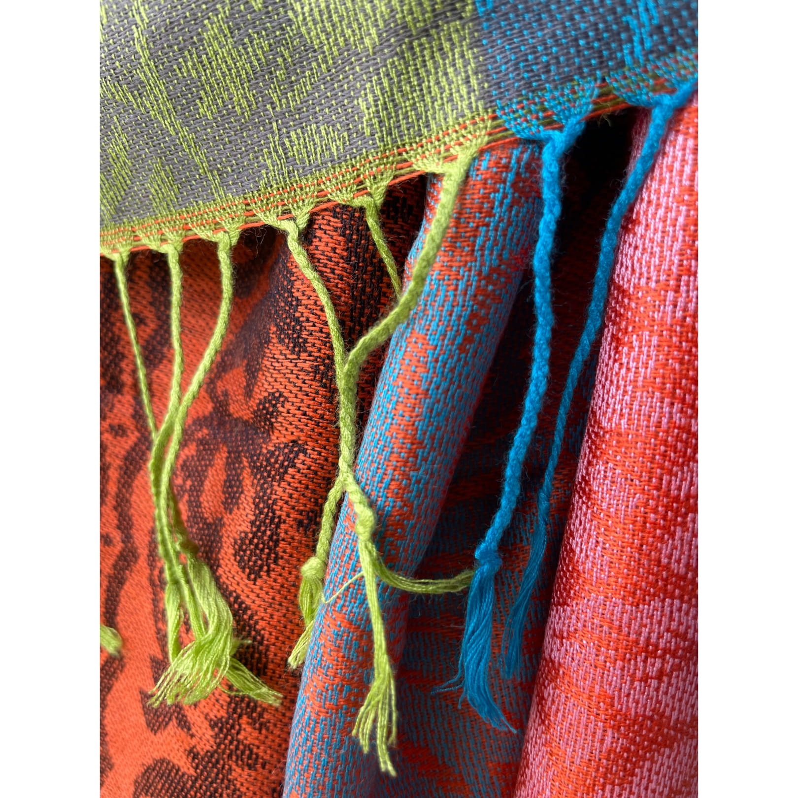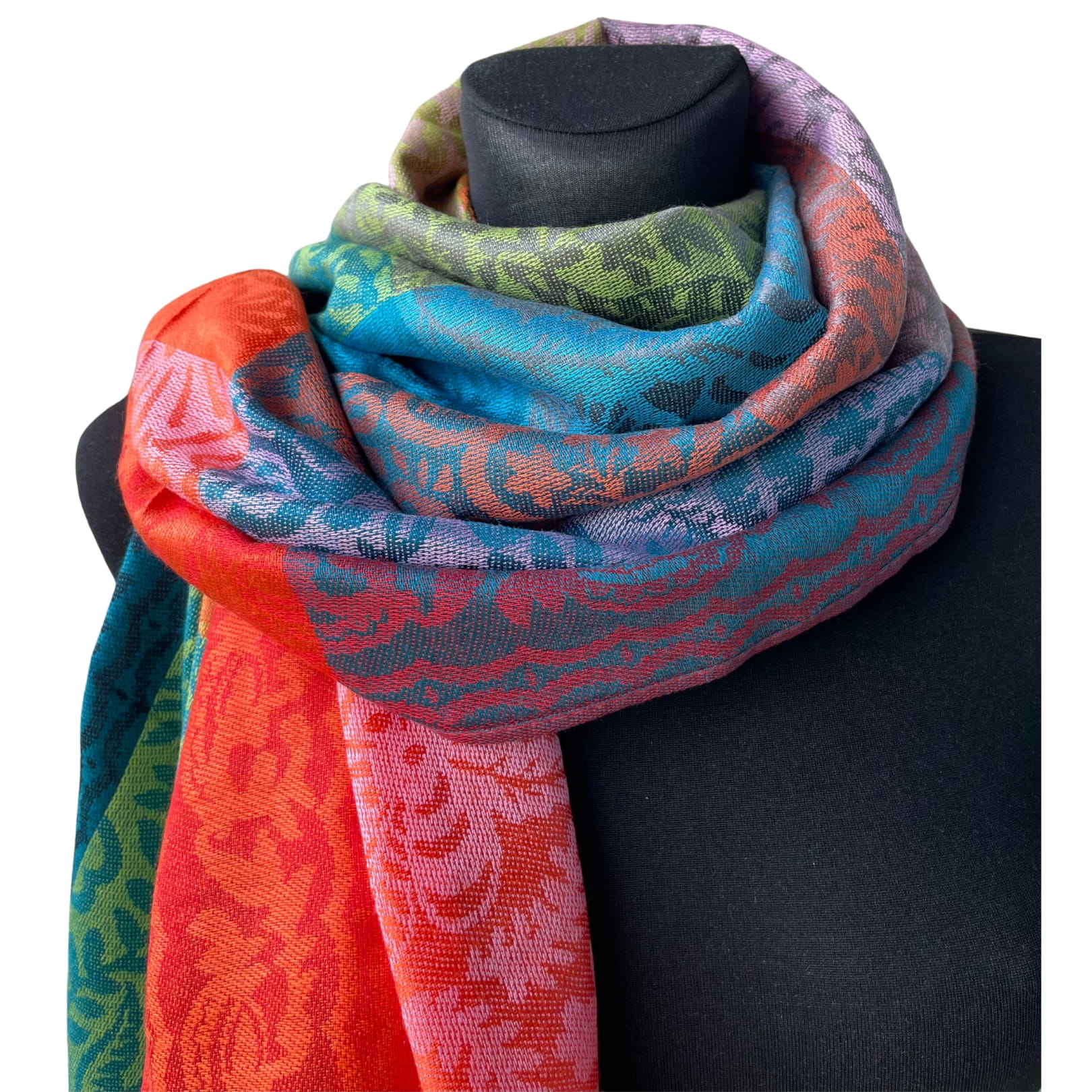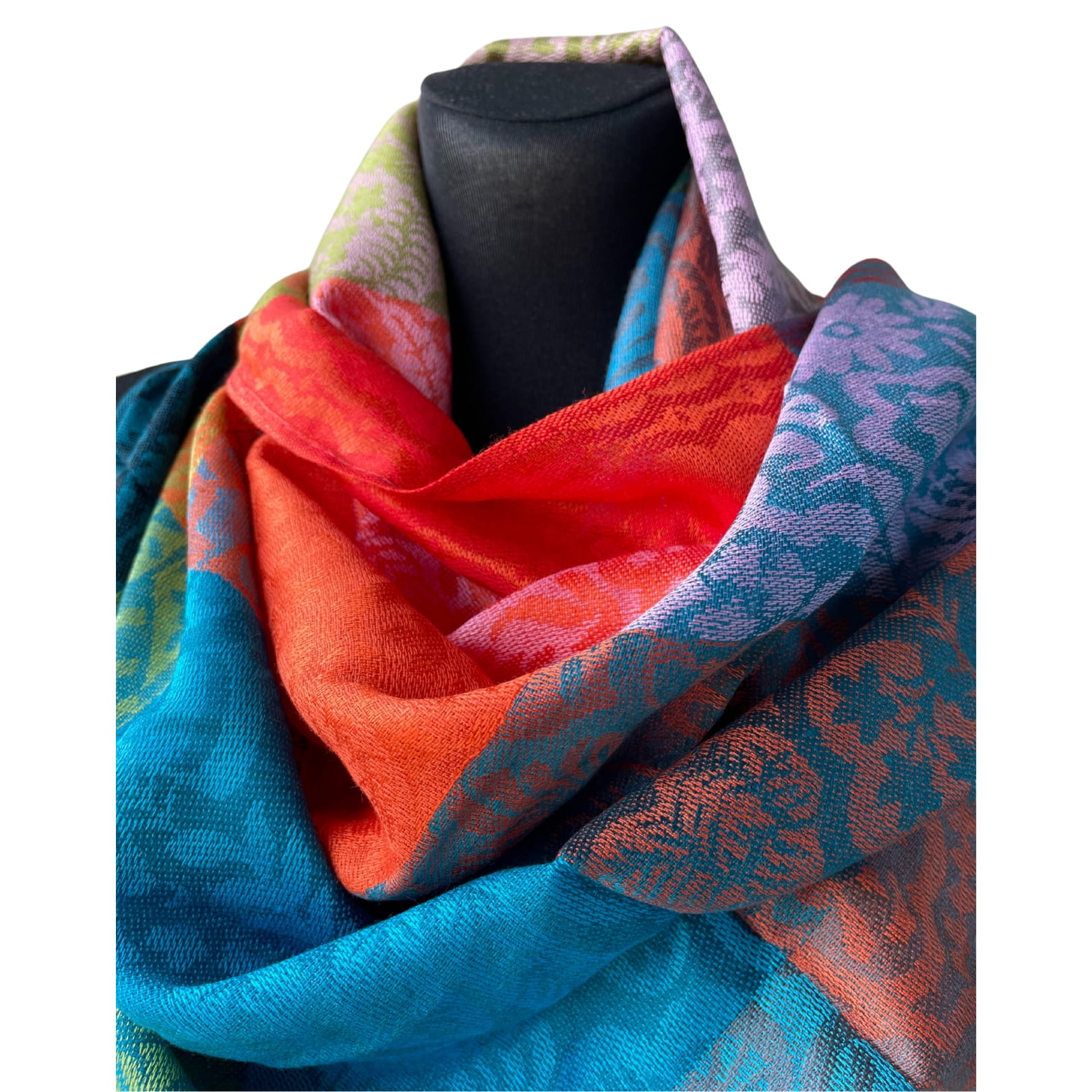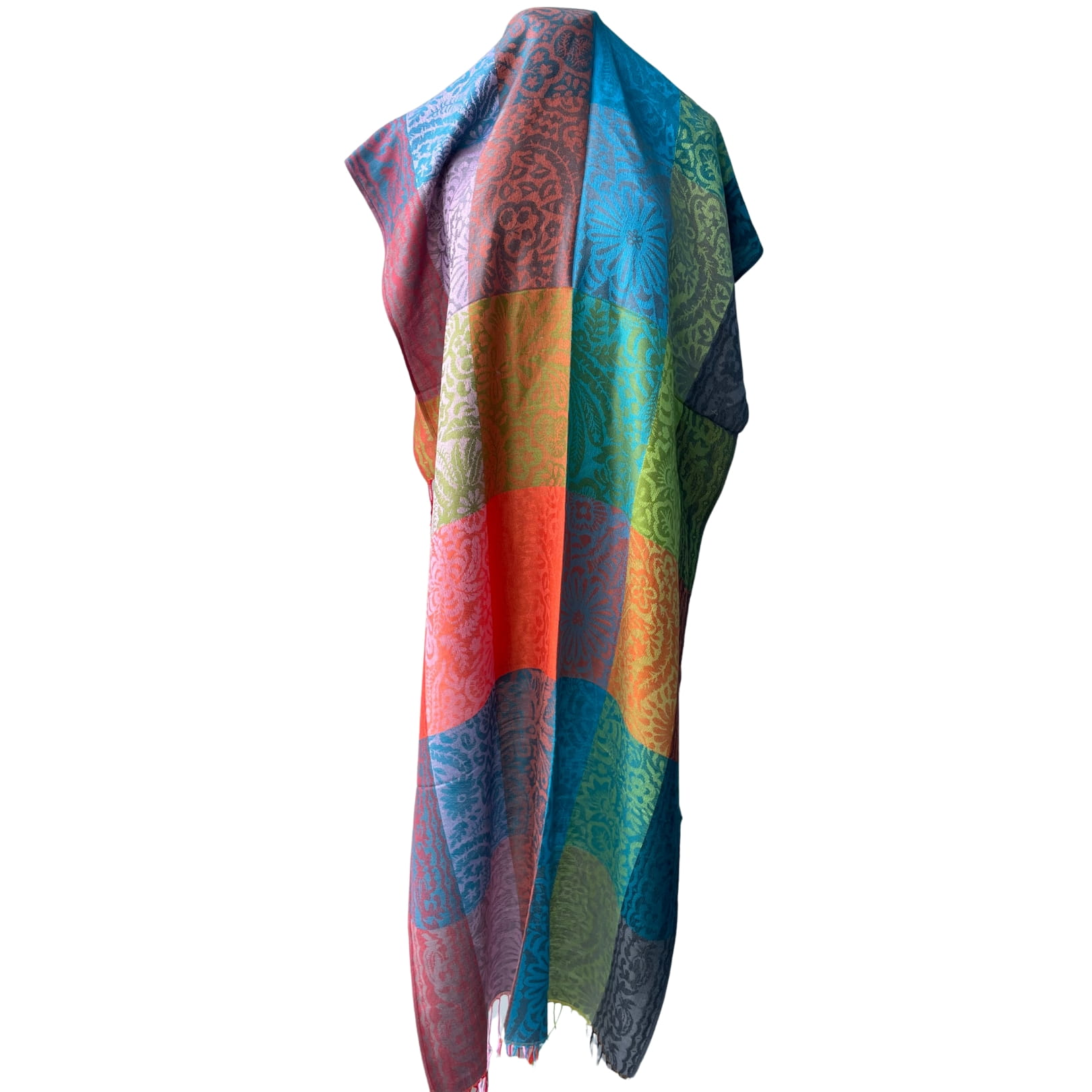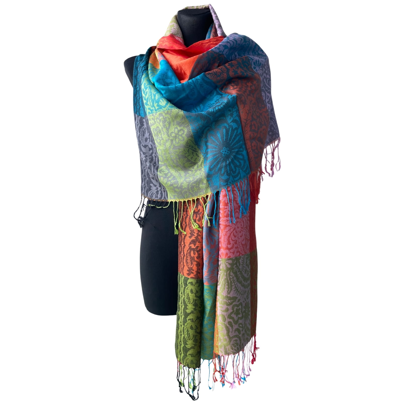 Cienka wielokolorowa damska chusta/ szal z frędzlami, żywe kolory /wariant nr 1/ - ok. 190 x 65 cm