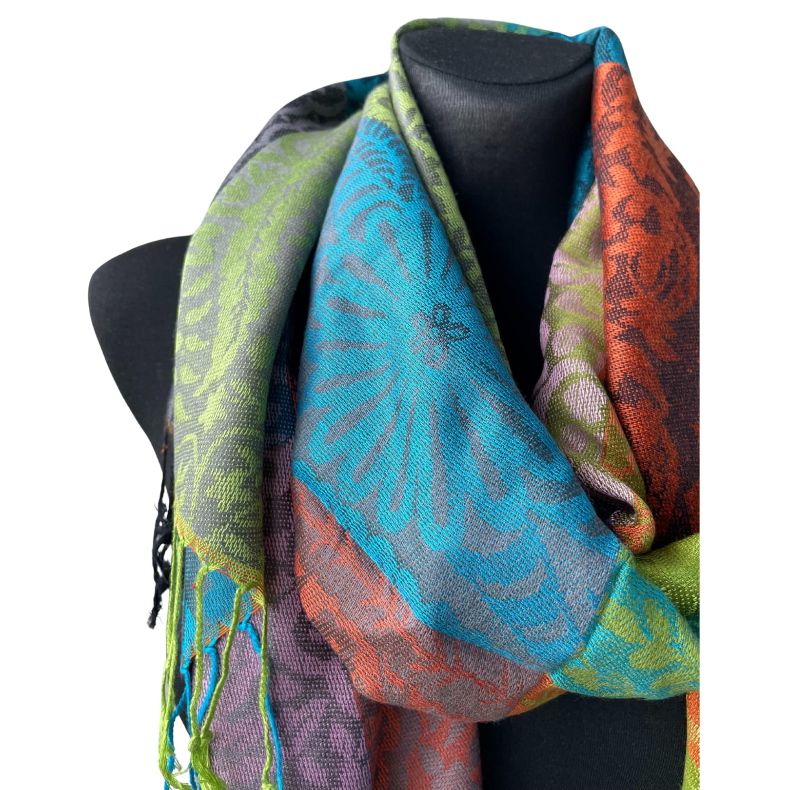 Elegancki, wielokolorowy cienki szal/ chusta z frędzlami /wariant nr 1/