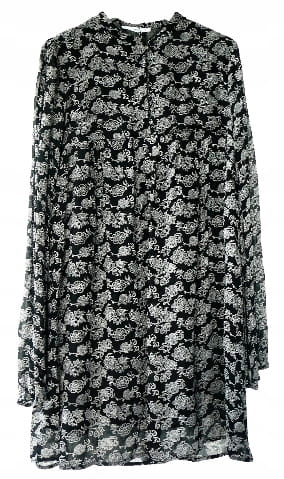 Czarna elegancka rozkloszowana luźna sukienka w kwiaty, z podszewką i długim rękawem - rozmiar 36 S - Mango