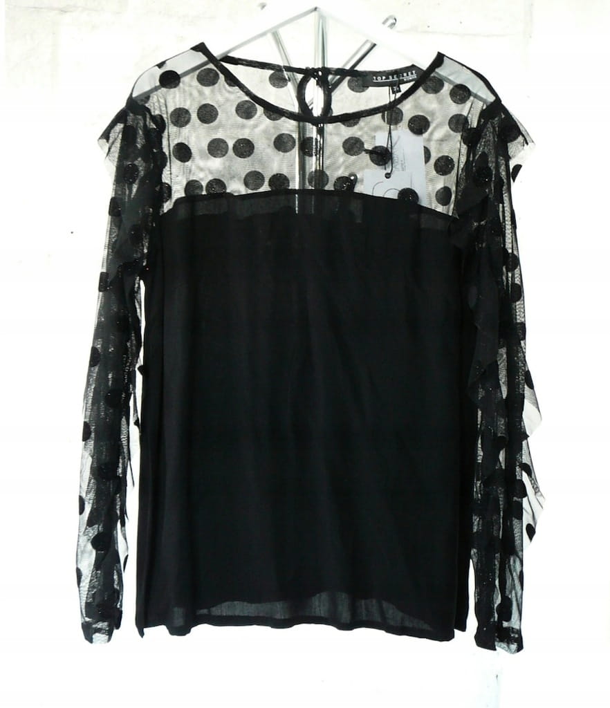 Czarna bluzka z tiulem, falbanami i połyskującymi grochami TOP SECRET