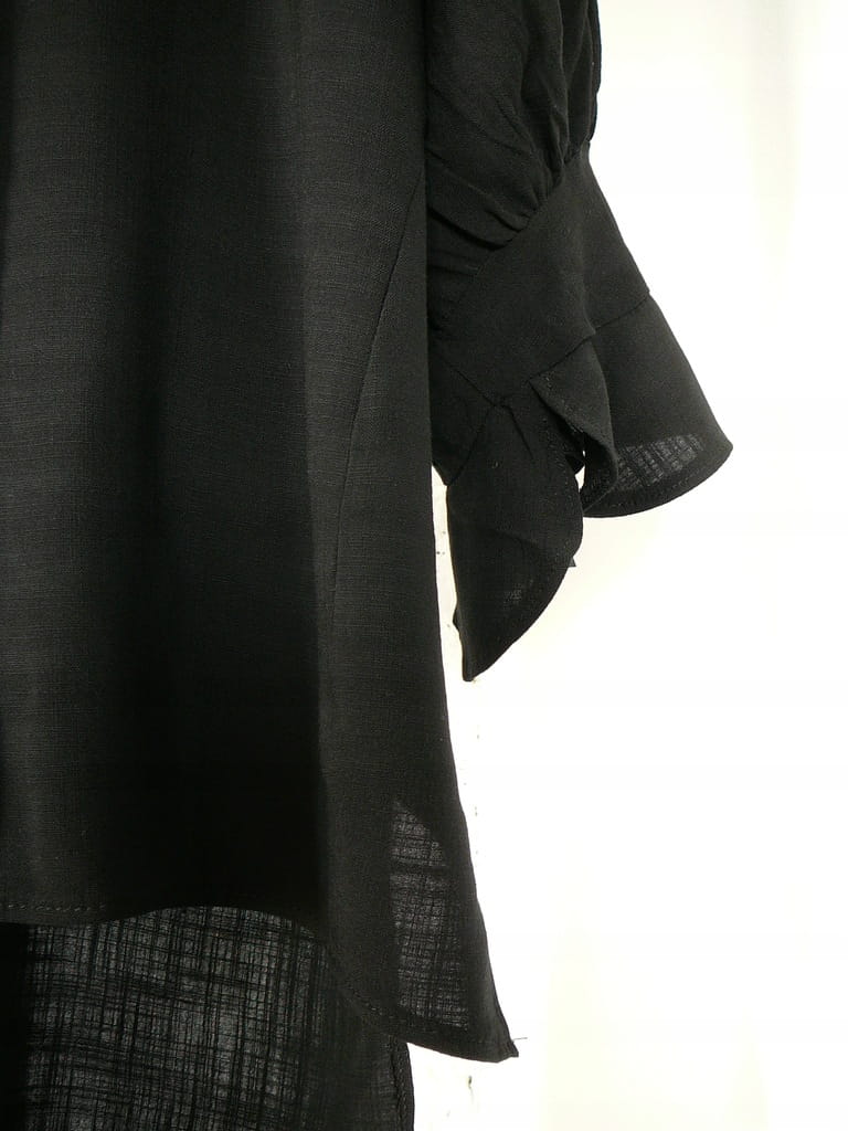 - rękaw: 7/8, szeroki, kimonowy (ok. 21 cm), zakończony falbaną