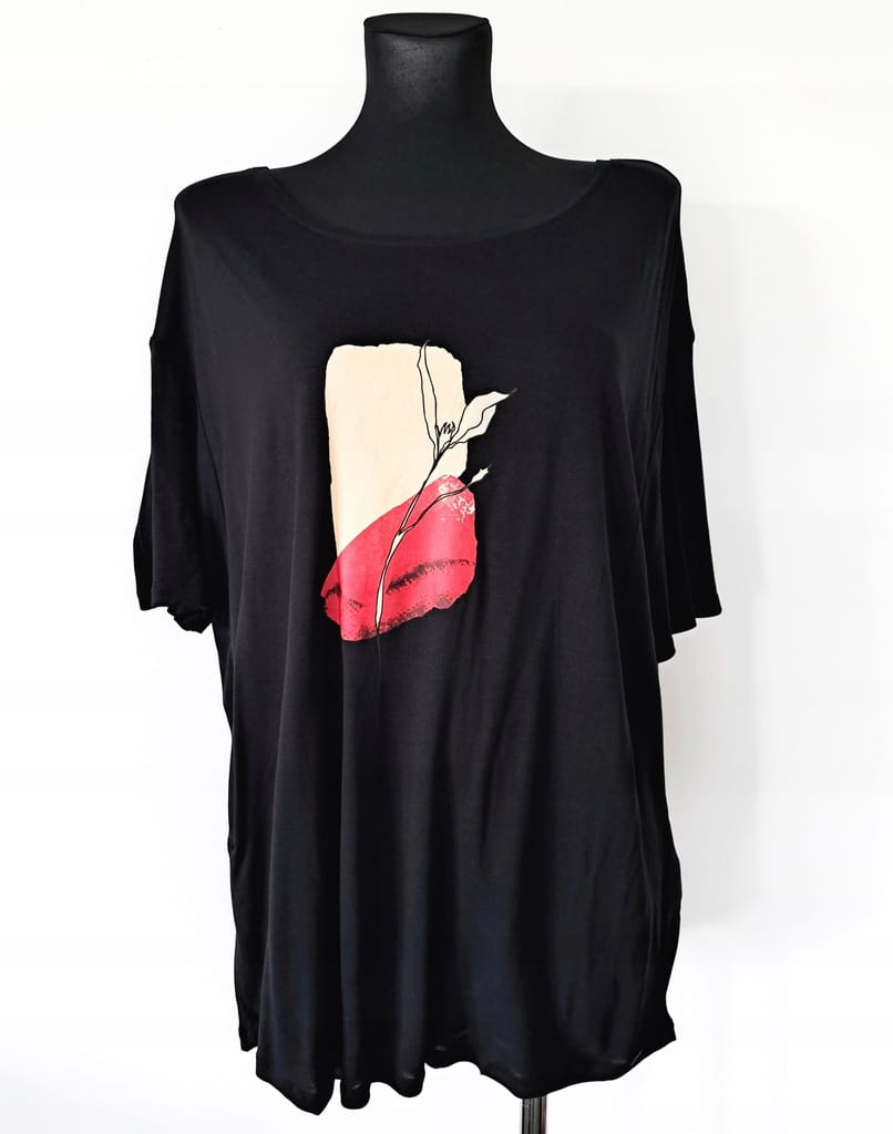 Czarna luźna damska bluzka z kremowo-czerwonym oryginalnym nadrukiem i krótkim rękawem - rozmiar 40 L - Big Star