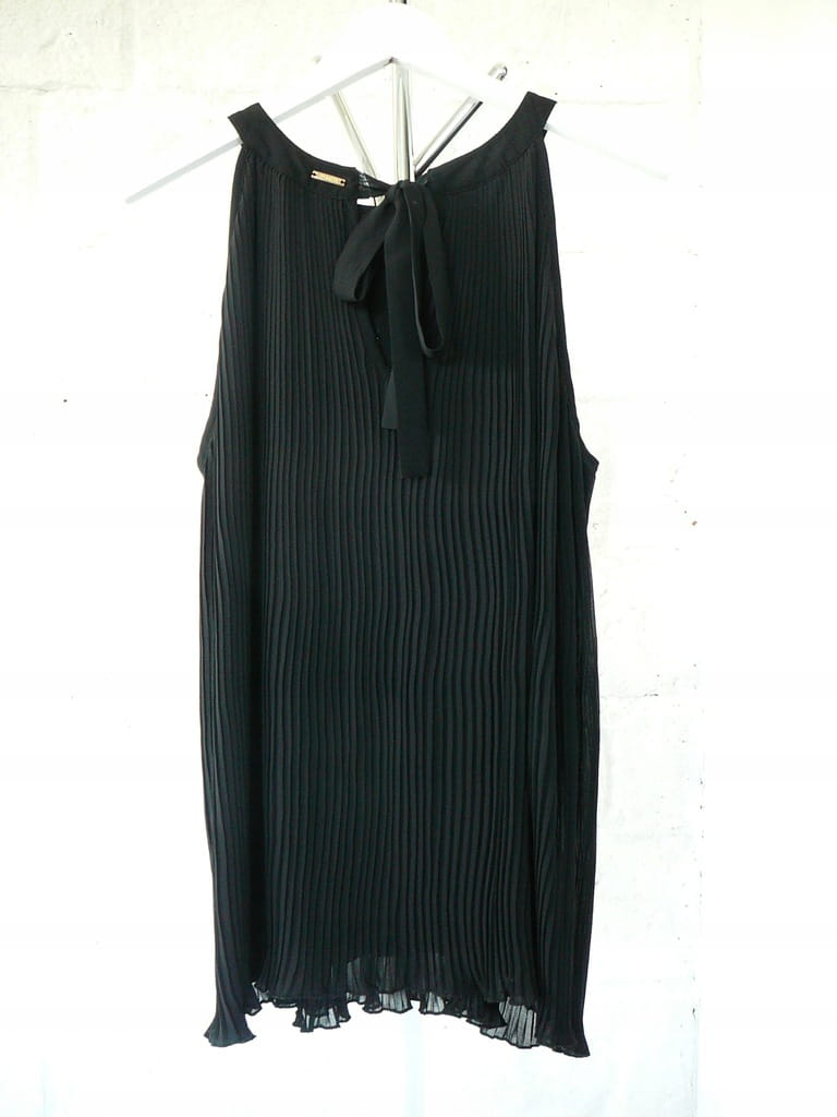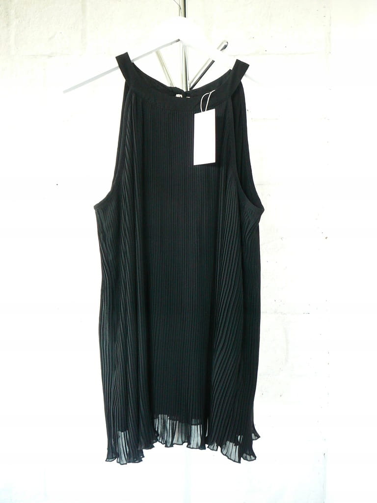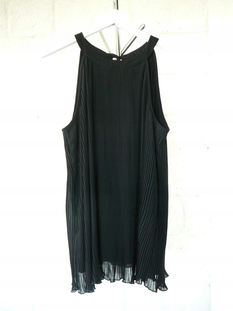 Czarna luźna plisowana elegancka damska bluzka z wiązaniem na plecach, dekoltem typu halter i podszewką, bez rękawów - rozmiar 42 XL - Top Secret