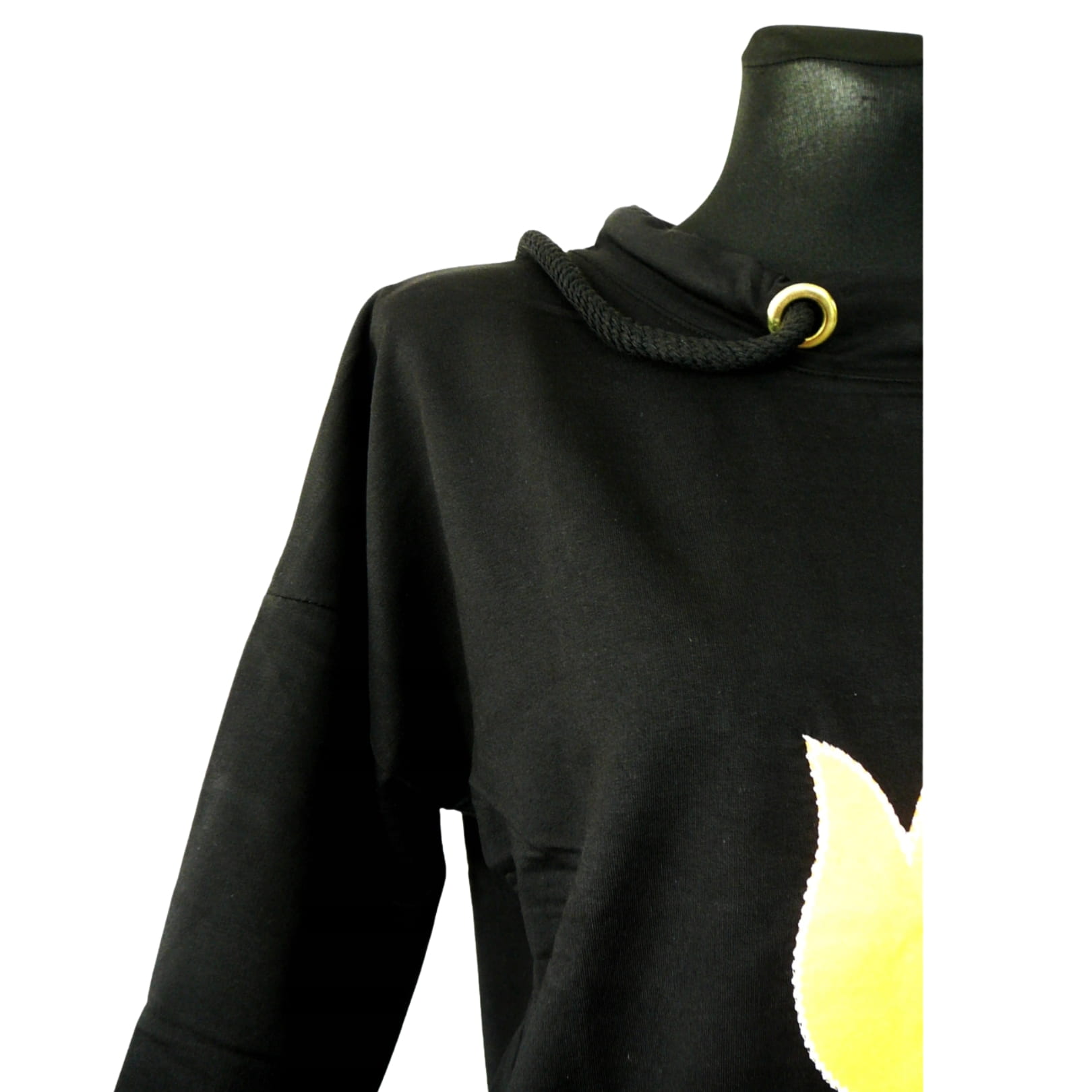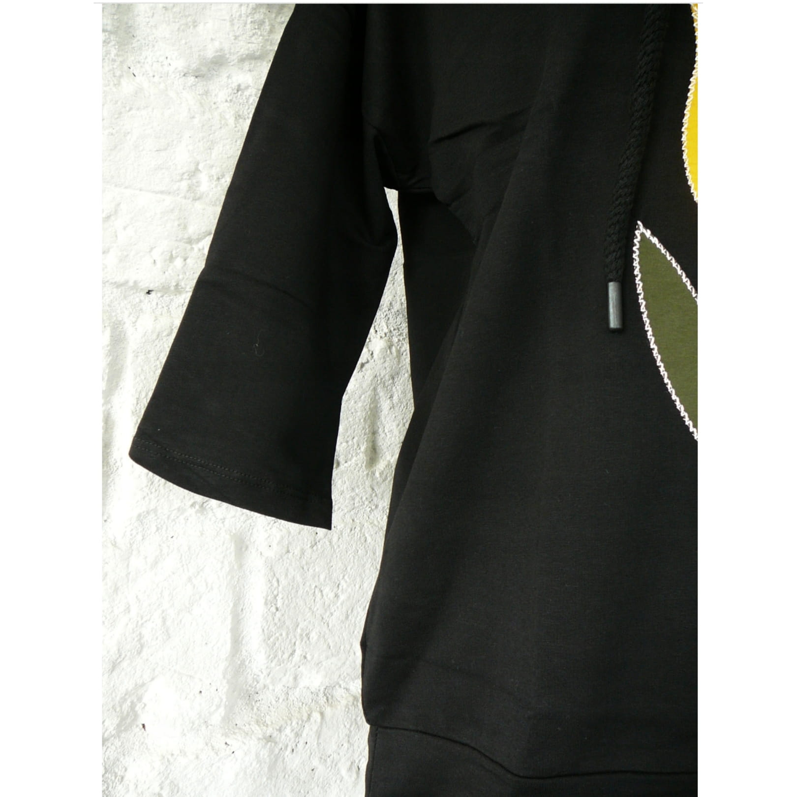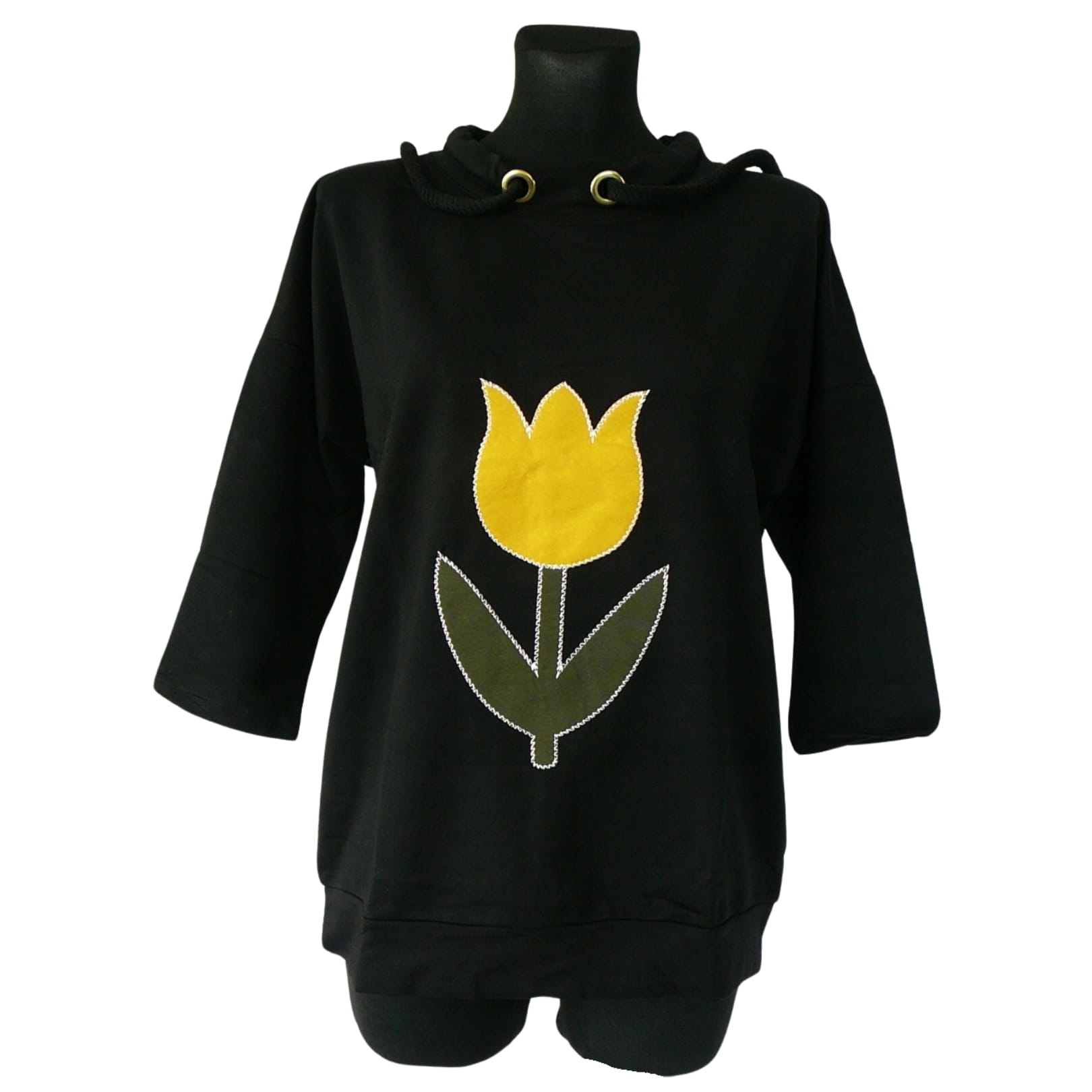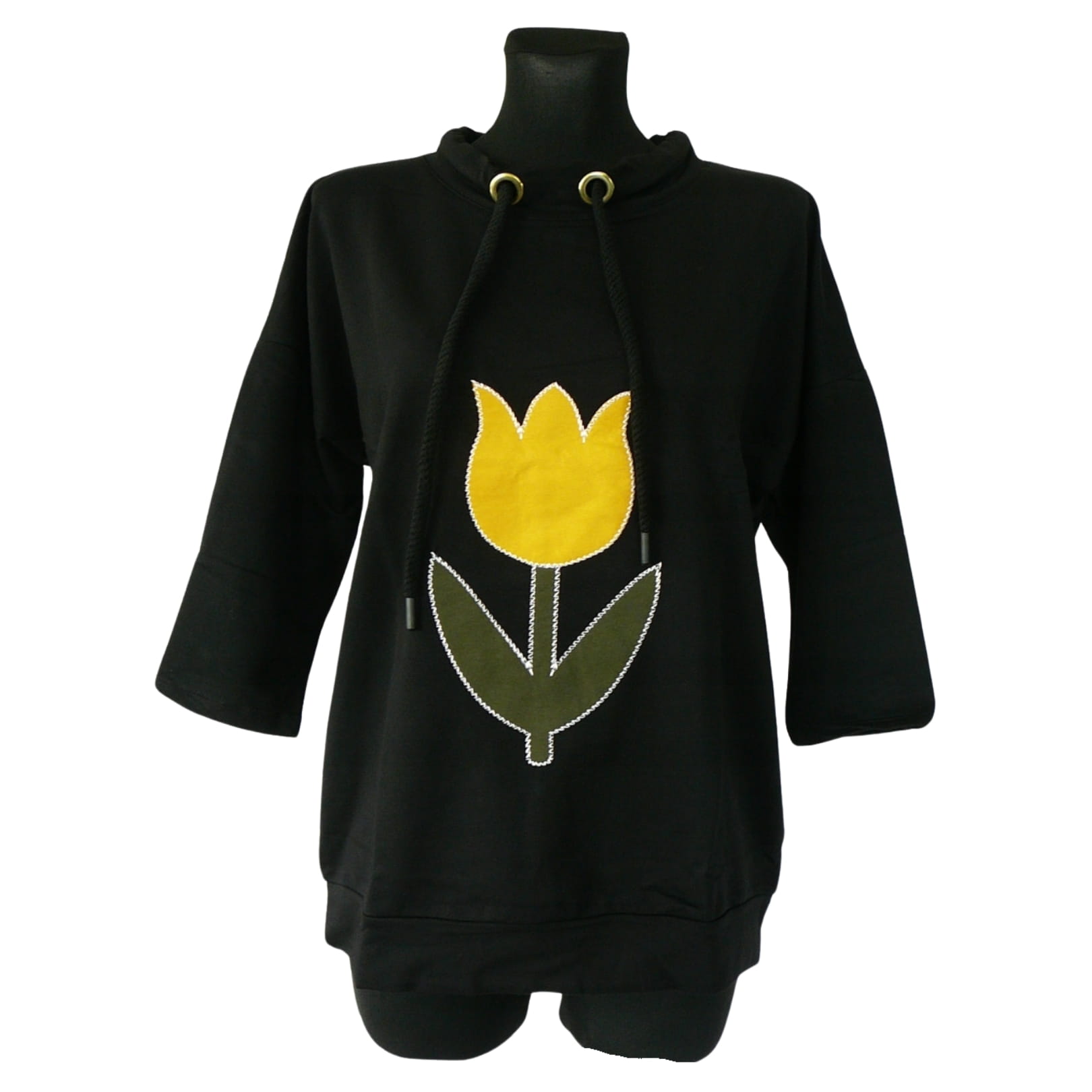 Czarna bluza z aplikacją z żółtym tulipanem - niech Twoja garderoba rozkwitnie!