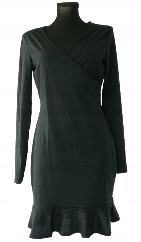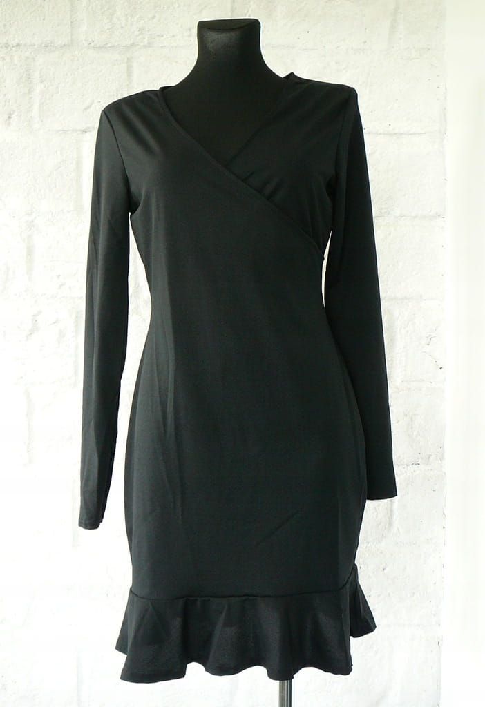 Czarna sukienka z długim rękawem i falbaną na dole - rozmiar 40 L - Missguided