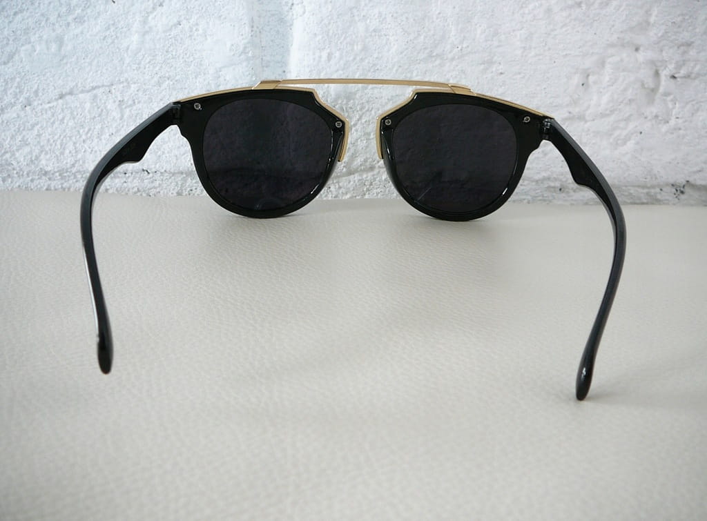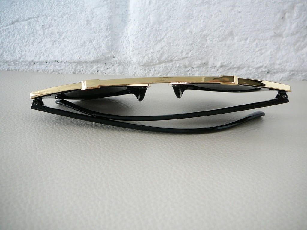 - kolor: oprawki - czarny, złoty; zauszniki - czarne; szkła - niebiesko-zielone