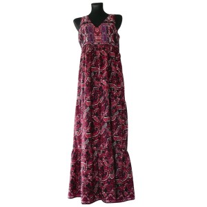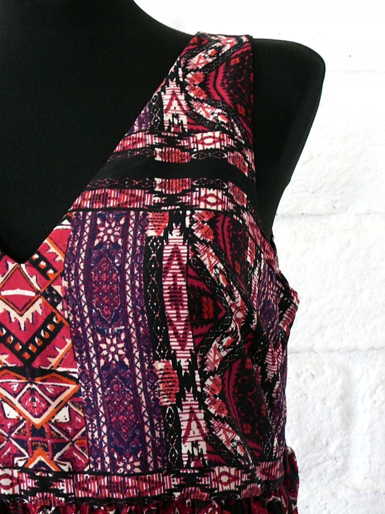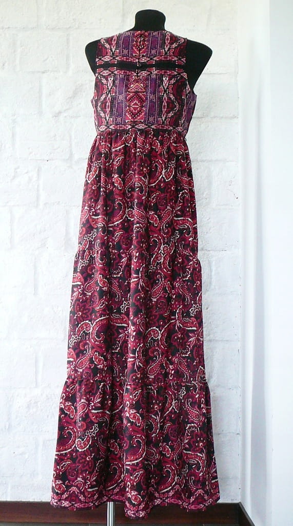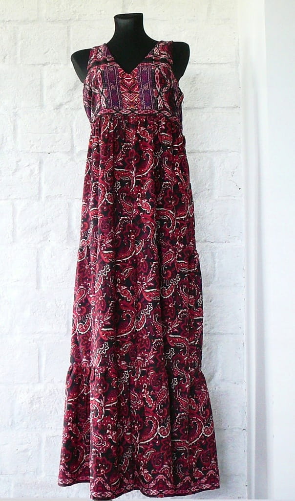 Długa, luźna, letnia rozszerzana czarna sukienka z kolorowymi wzorami typu paisley w stylu etnicznym/ boho/ indyjskim, bez rękawów - rozmiar 36/38 S/M - Jessica Simpson