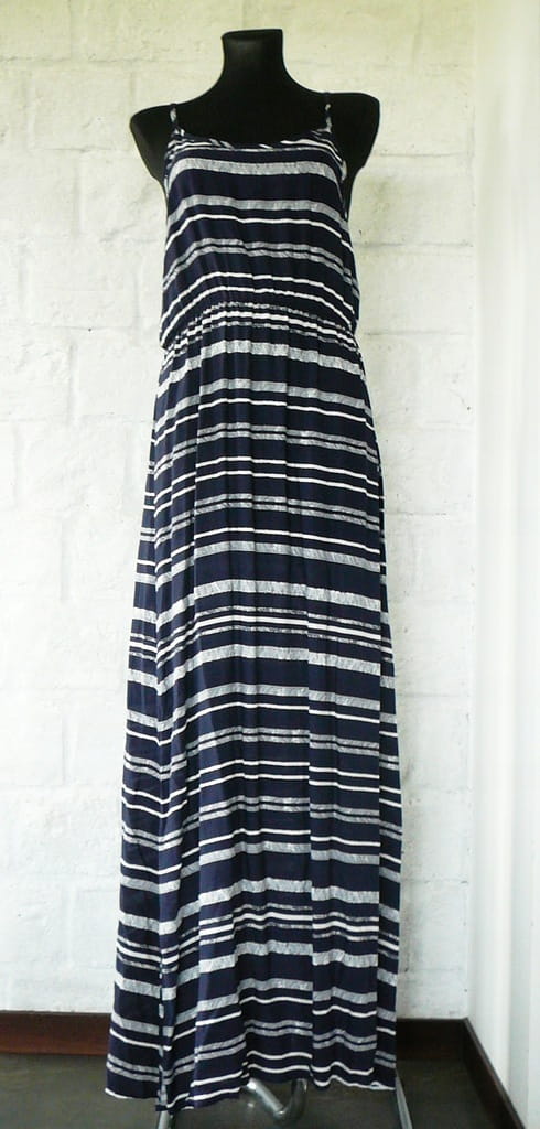 Długa granatowa sukienka w paski, bez rękawów, z regulowanymi ramiączkami - rozmiar 38 M - Top Secret