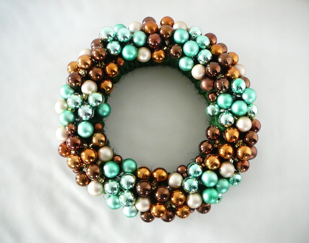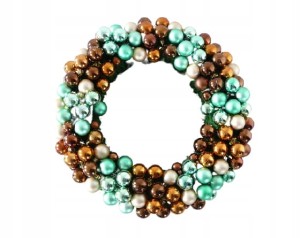 Duży świąteczny wianek z bombkami w odcieniach zieleni i brązu