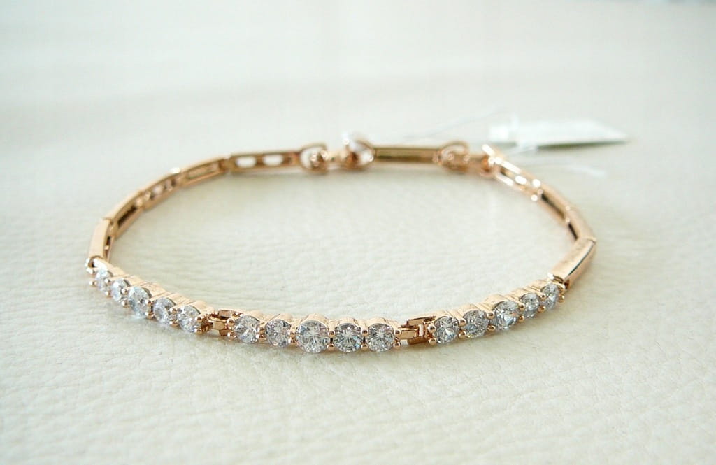 Bransoletka platerowana złotem z ozdobnymi, przeźroczystymi cyrkoniami