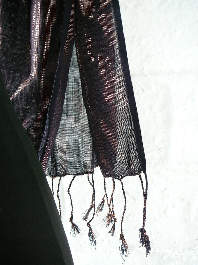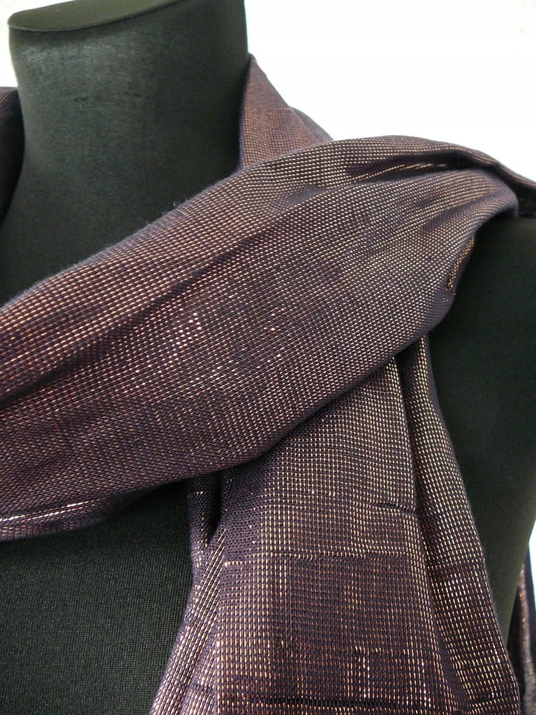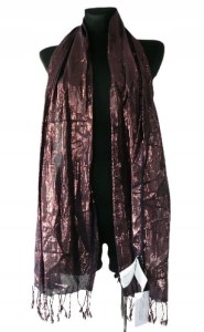 Elegancki połyskujący cienki szal z metaliczną nicią w miedzianym kolorze