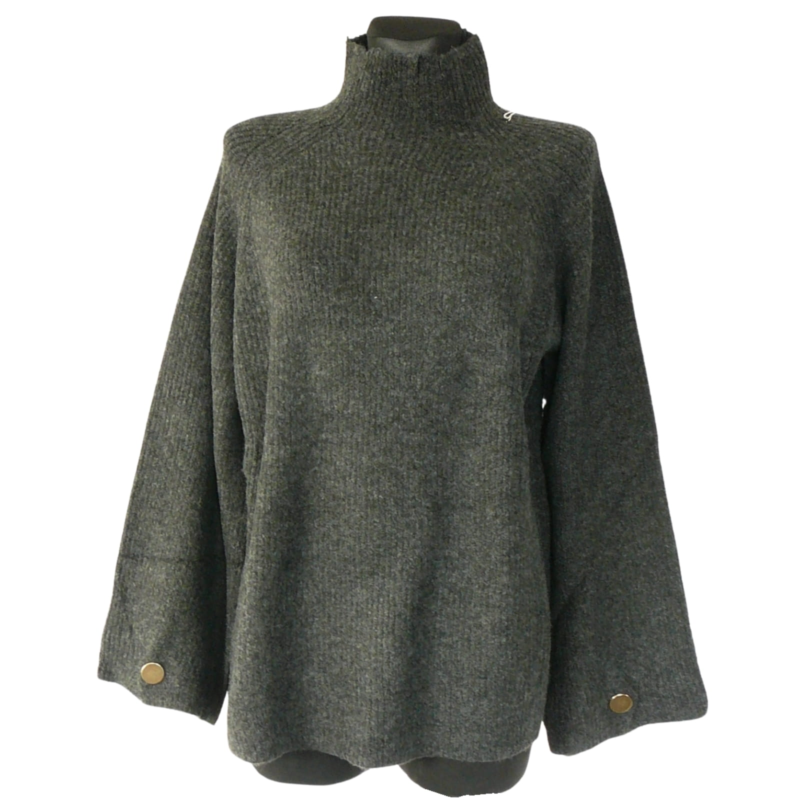 Grafitowy włoski damski ciepły półgolf z długimi szerokimi rękawami, z domieszką wełny - rozmiar 40/42 L/XL