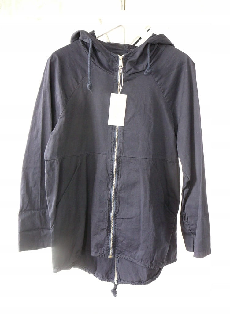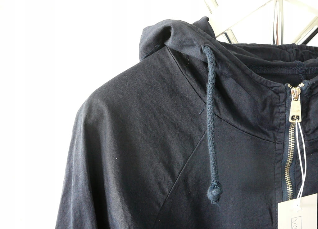 Granatowa cienka włoska damska kurtka z kapturem i długim rękawem - r. uniwersalny