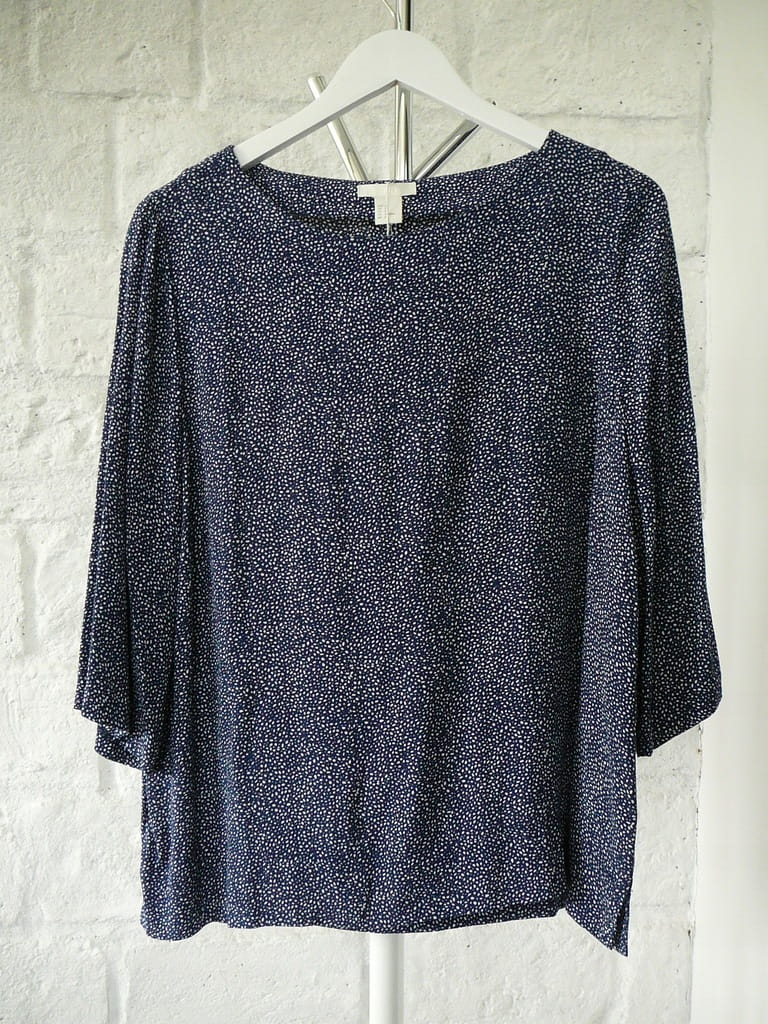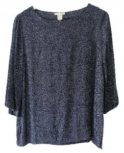 Granatowa codzienna damska bluzka w białe wzory, z szerokim rękawem 3/4 - rozmiar 38 M - H&M